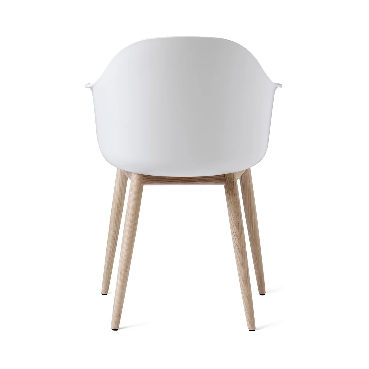 De Harbour Chair is gemaakt van hout en polypropyleen. Het vierpotige frame van ronde, naar onderen taps toelopende eiken poten ondersteunt de zitschaal van glasvezelversterkte kunststof, die in veel verschillende kleuren verkrijgbaar is. Zo past de stoel met armleuningen zich perfect aan elke sfeer aan en kan hij als onopvallende stoel aan de eettafel of als blikvanger in de gang worden geplaatst.