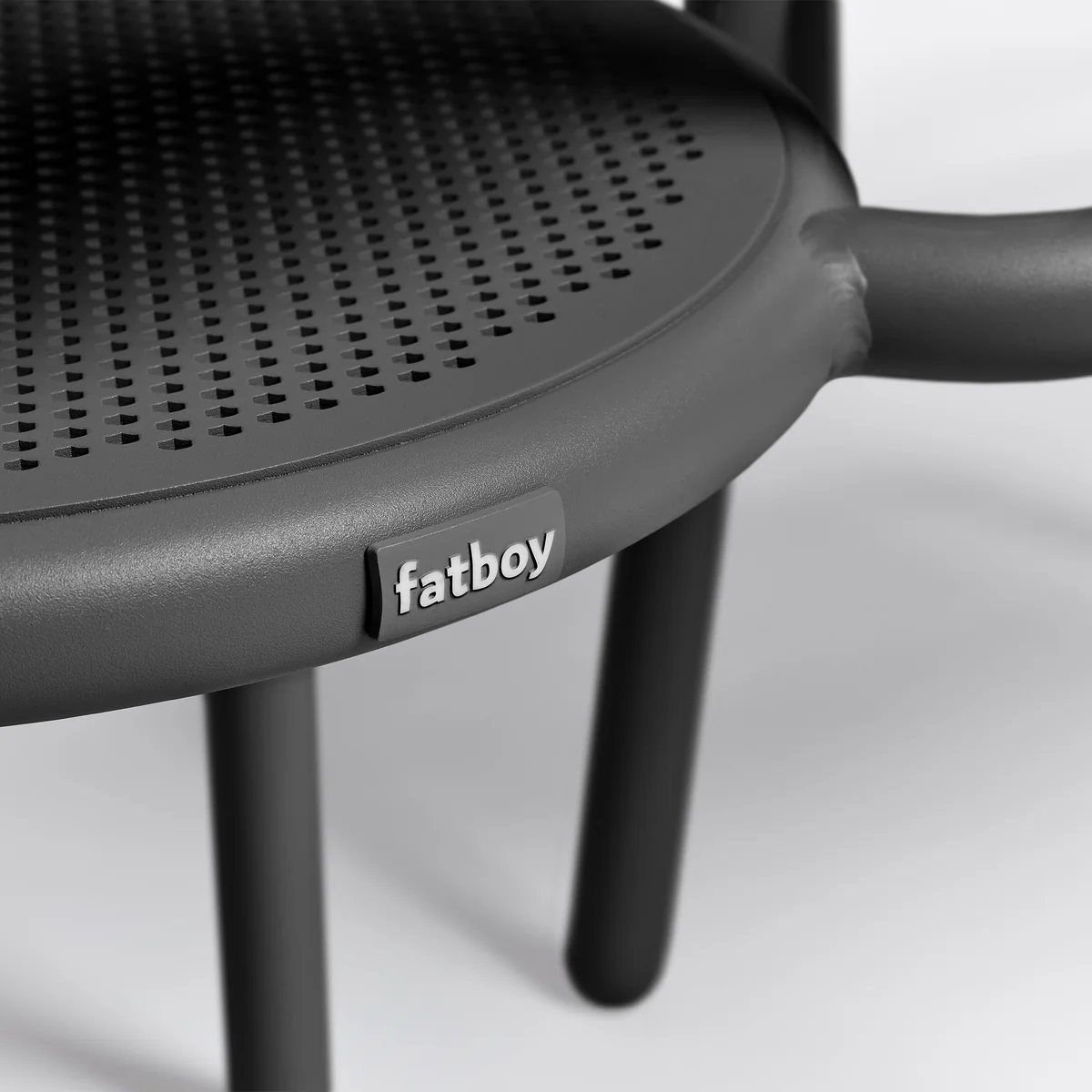 De Toni fauteuil is ontworpen door Erik Stehmann voor Fatboy en wordt gekenmerkt door zijn stabiele constructie en verscheidenheid aan kleuren. Hij is gemaakt van buisvormig aluminium en behandeld met een Axalta beschermlaag om hem te beschermen tegen weersinvloeden. Dit geeft de klassieke bistrostoel met een ronde zitting een stabiele constructie die tegelijkertijd heel licht blijft.