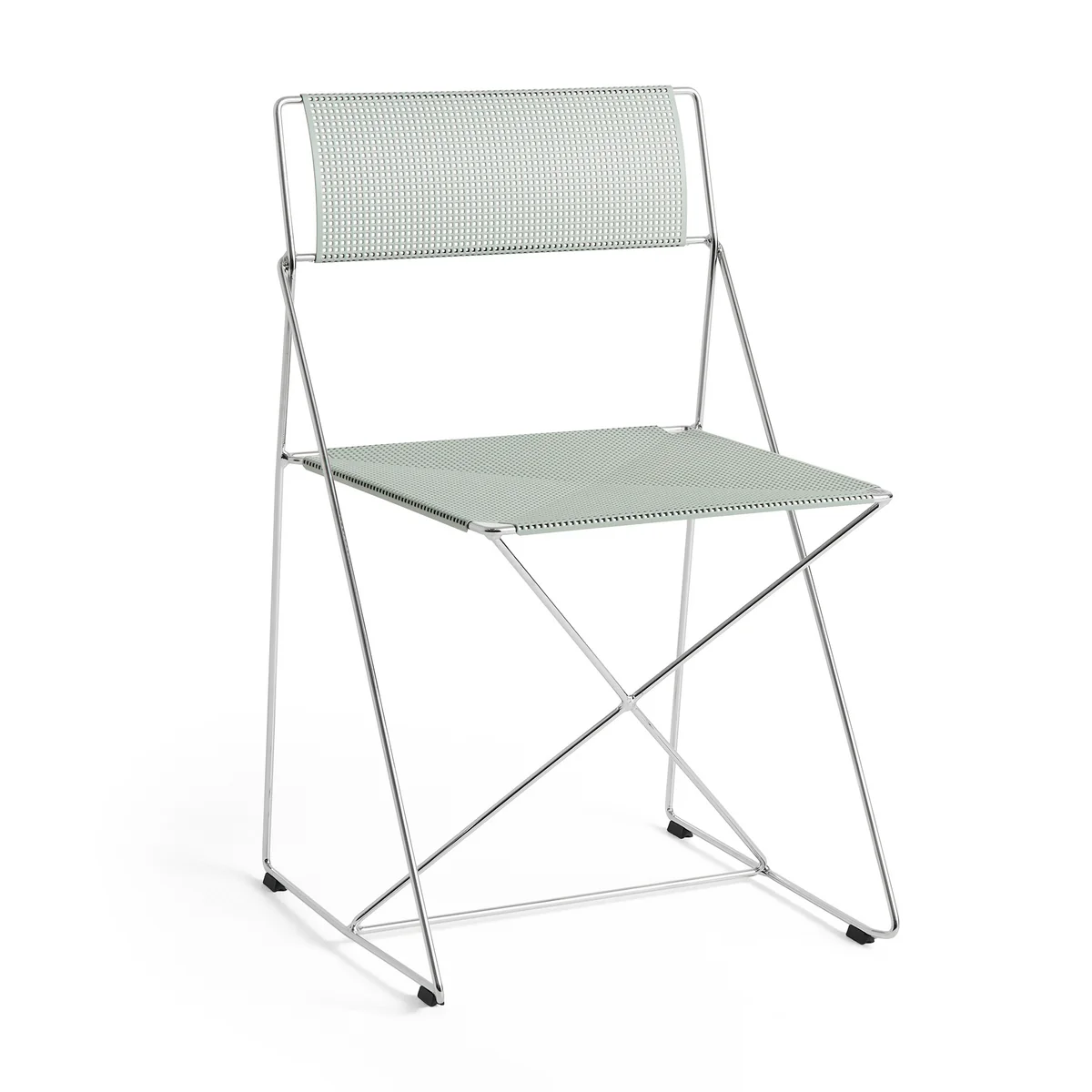 De X-Line stoel van HAY, oorspronkelijk ontworpen door Niels Jørgen Haugesen aan het eind van de jaren 1970, is een tijdloze klassieker van modern design. De stoel is gemaakt van filigraan metaaldraad en weerspiegelt de industriële stijl en precieze staalconstructie van de high-tech beweging uit de jaren 1970.