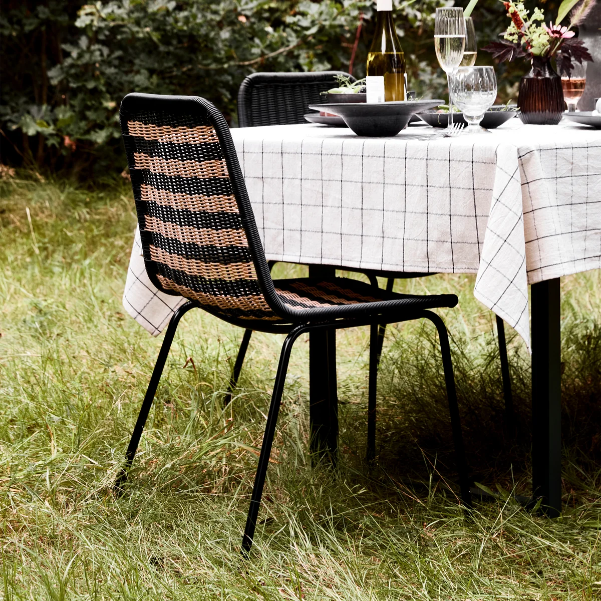 Hapur Dining Chair House Doctor De from wordt gekenmerkt door zijn natuurlijke uitstraling, die vooral te danken is aan de geweven kunststof zitschaal. De licht gebogen zitting biedt veel comfort en nodigt uit om te blijven zitten. Het filigraan ijzeren frame met vier poten voegt industriële charme toe.
