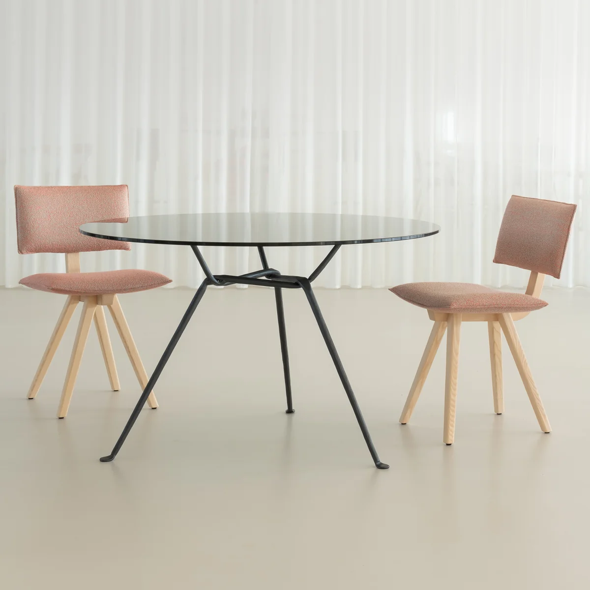 De Trave stoel bestaat uit een robuust stalen frame bedekt met een geweven kunststof gaas. Dit materiaal is niet alleen duurzaam en weerbestendig, maar geeft de stoel ook een luchtige lichtheid en een eigentijdse uitstraling.