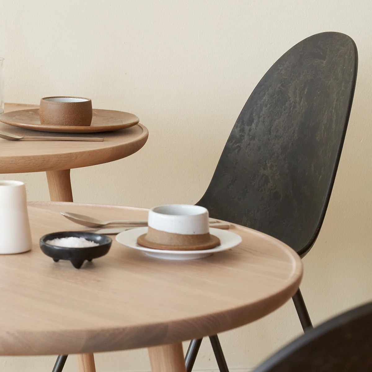 De Eternity stoel van Space Copenhagen voor Mater inspireert met zijn moderne look en duurzame Mater ials. Eternity is gemaakt van cirkelvormige Mater ialen. Koffiebekerafval, ge-upcycled industrieel plastic afval en gerecycled glasvezel worden gebruikt om de zitschaal te maken. De poten van de stoel zijn gemaakt van gerecycleerd staal. Eternity is een uiterst comfortabele en functionele stoel met industriële en sculpturale details.