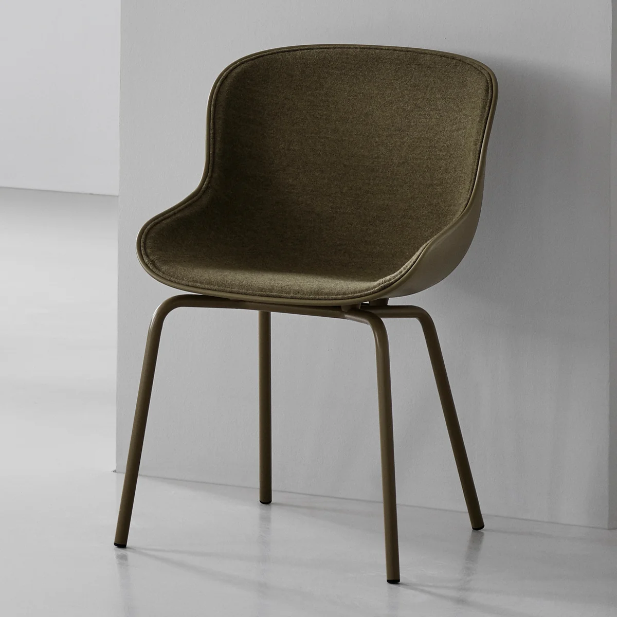 Norman Kopenhagen produceert de Hyg Chair Hyg is gemaakt van een gepoedercoat stalen frame en een polypropyleen omhulsel. De bekleding is bekleed met een stof van de fabrikant Camira, die bestaat uit zacht katoen en vlas.