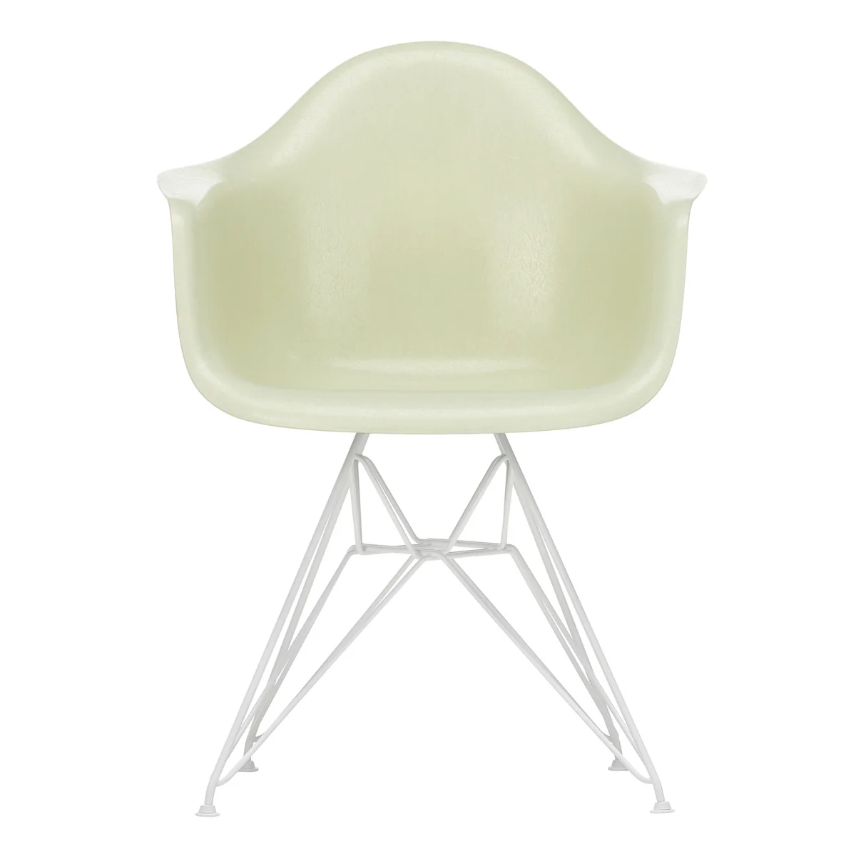 De Eames Fiberglass fauteuil DAR (Dining Height Armchair Rod Base) is verkrijgbaar Vitra in vele verschillende uitvoeringen, kleuren en met verschillende onderstellen. Dit betekent dat de stoel naar eigen inzicht kan worden samengesteld. De glasvezelversie heeft een vezelachtig oppervlak dat elke stoel uniek maakt.
