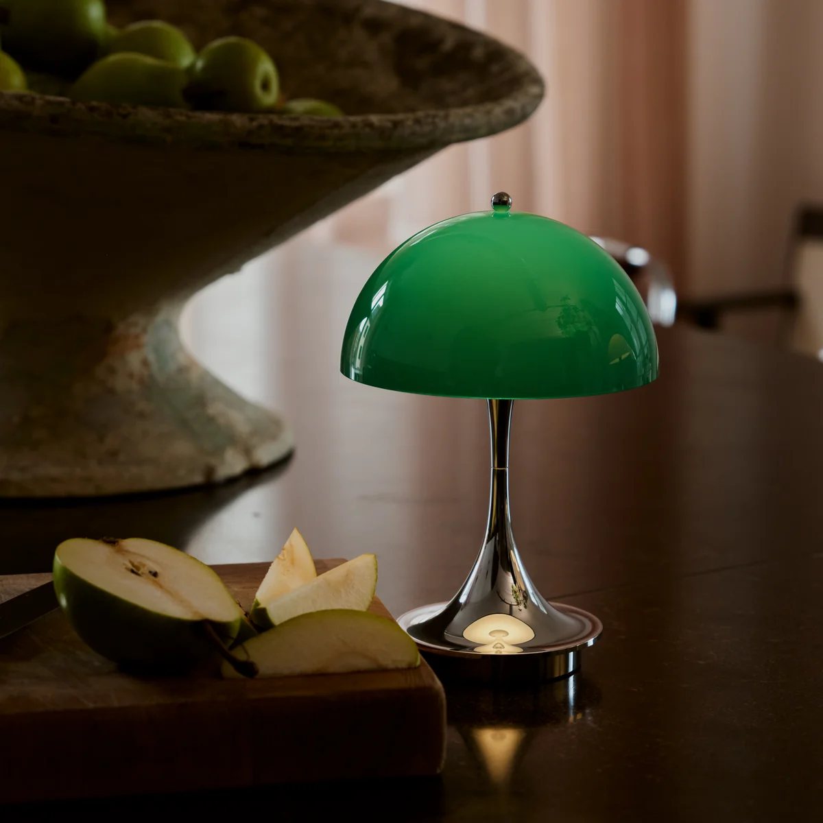 De Panthella 160 Portable V3 is een esthetische en technische vooruitgang die indruk maakt door zijn verbeterde gebruiksvriendelijkheid, langere levensduur van de batterij en grotere keuze aan kleuren.