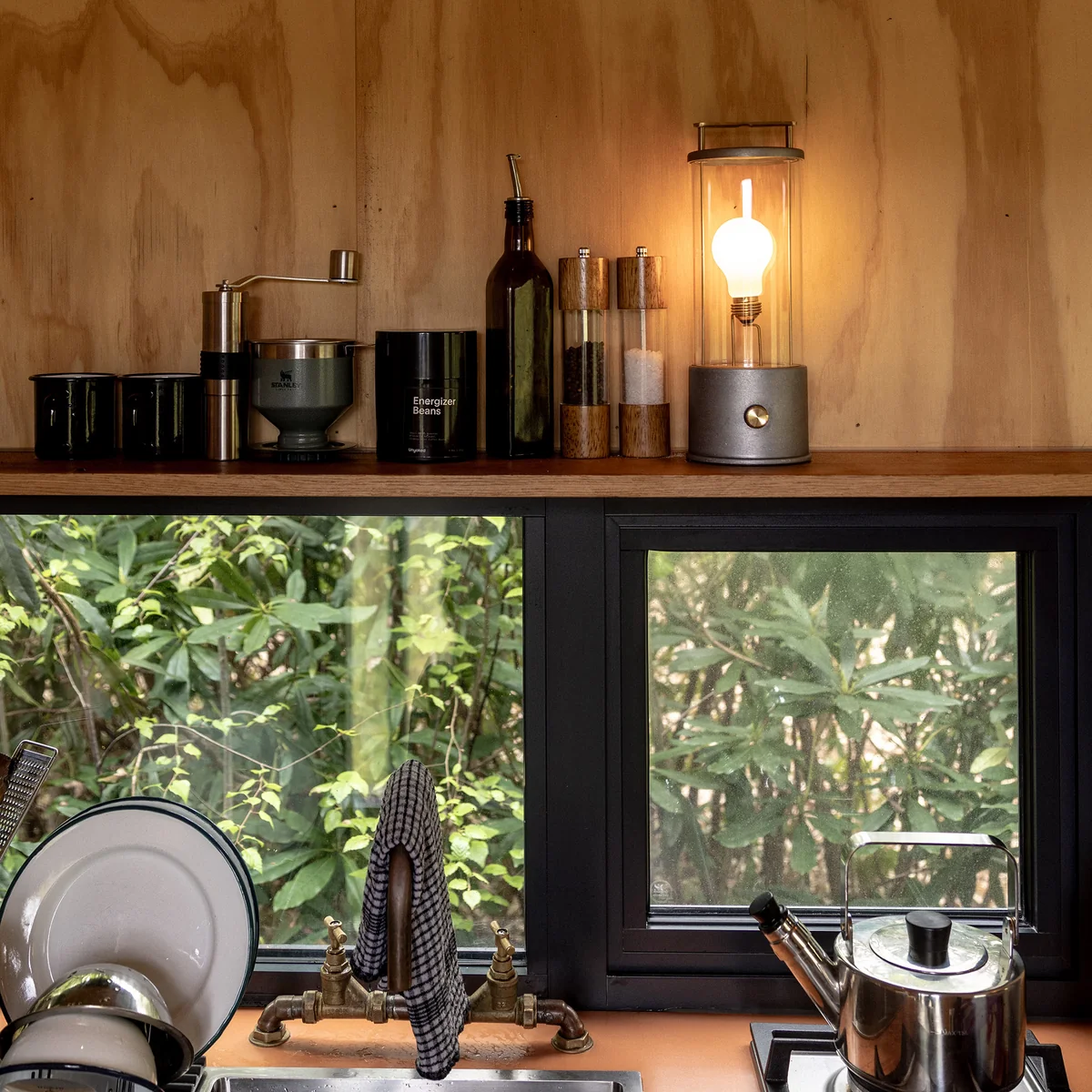 De Rugged Muse oplaadbare tafellamp is de robuuste herinterpretatie van de populaire Muse lamp - ontwikkeld voor iedereen die design, functie en duurzaamheid wil combineren. Hij is gemaakt van onbehandeld aluminium met fijne messing details, maakt indruk met zijn weerbestendige, splintervrije ontwerp en is perfect voor gebruik buitenshuis - of het nu gaat om kamperen, op een boot of in je eigen tuin.