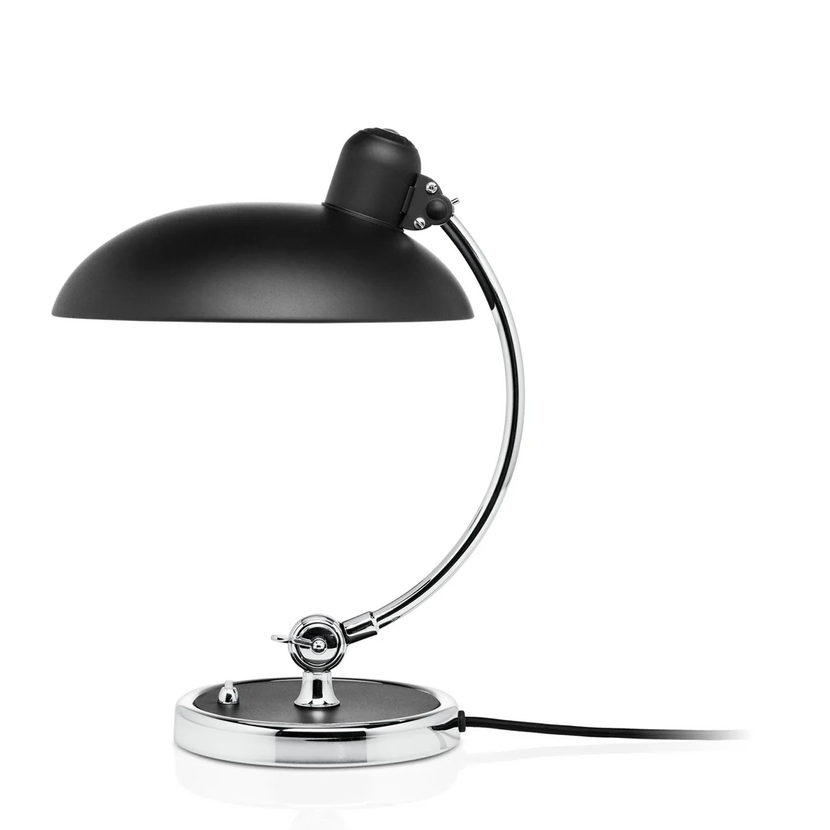 6631 Ontworpen door de Duitse zilversmid Christian Dell aan het begin van de jaren 1930, belichaamt de KAISER Idell lamp -T Luxus in essentie de stijl van de Bauhaus-beweging uit die tijd. De armatuur wordt gekenmerkt door haar formele eenheid en maakt tegelijkertijd indruk met slechts een paar fundamentele structurele elementen. De vorm wordt gekenmerkt door de gladde, asymmetrische reflectorkap met een diameter van 290 mm. Hij is gemaakt van hoogwaardig plaatstaal en is aan de buitenkant afgewerkt in de originele kleuren van die tijd - zwart, ivoor of zwartgroen - met een hoogglanzende, handgeschilderde natte afwerking. De ingenieuze vorm van de reflector in combinatie met de optimale lamppositie en de witte binnenlak maakt een technisch verfijnde lichtregeling mogelijk.