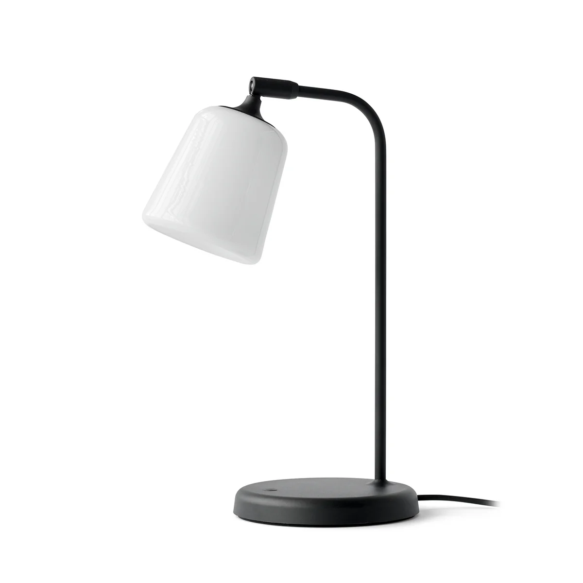 New Works Material De bureaulamp maakt deel uit van een serie die zich richt op de schoonheid van natuurlijke materialen en benadrukt de kracht van eenvoud in vorm. Met zijn draaibare kop voor extra functionaliteit en slanke zwarte frame is het een elegante toevoeging aan elke kamer.