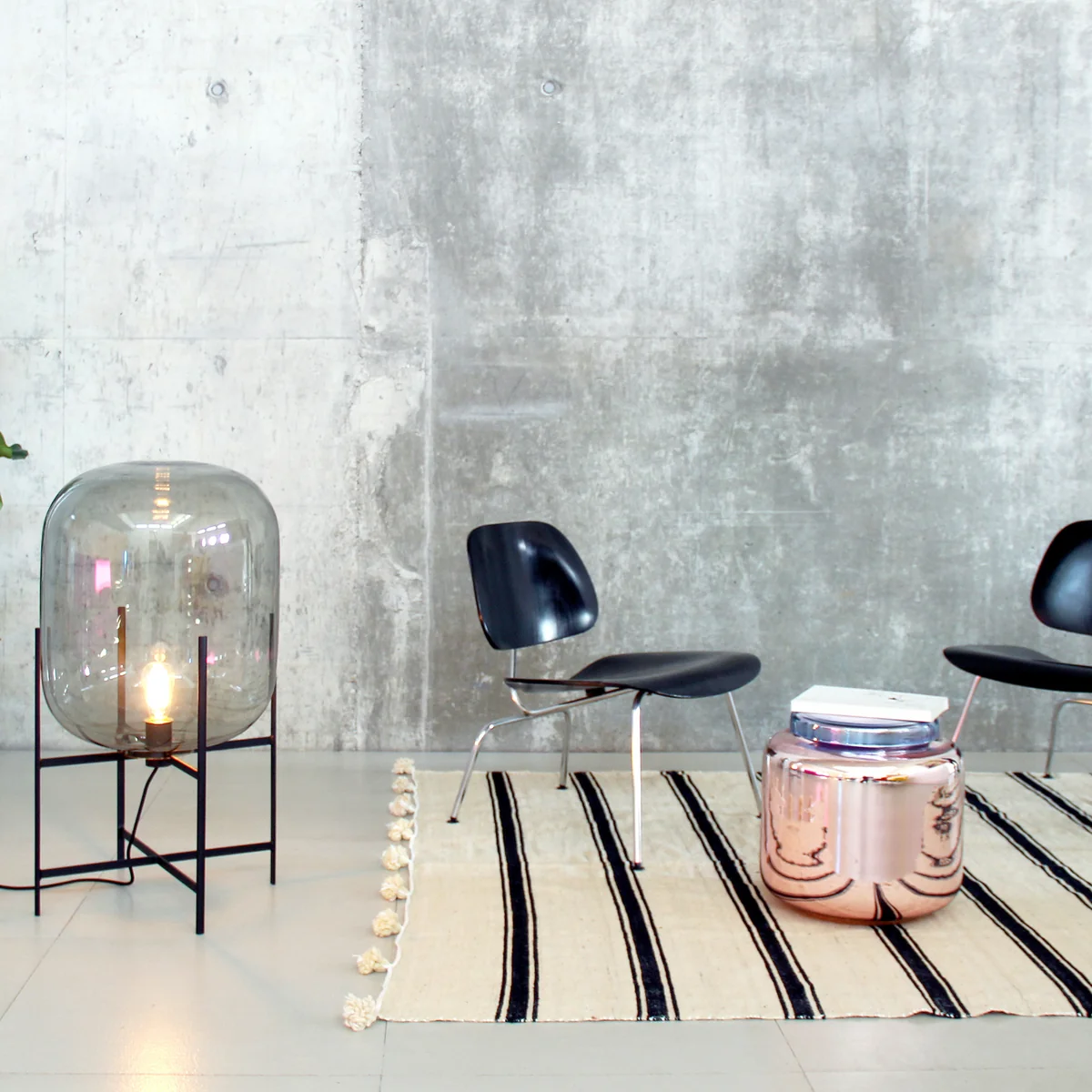 Het mondgeblazen glazen huis van de Oda lamp is verbonden met een eenvoudige metalen voet van gepoedercoat staal. De onafhankelijke stijl is verantwoordelijk voor het solitaire karakter van de Oda lamp, die ook in grotere ruimtes decoratief is. De materialen worden vaak gebruikt door de ontwerper Sebastian Herkner, die werkt met spannende herinterpretaties voor huizen die revolutionair en opvallend zijn.