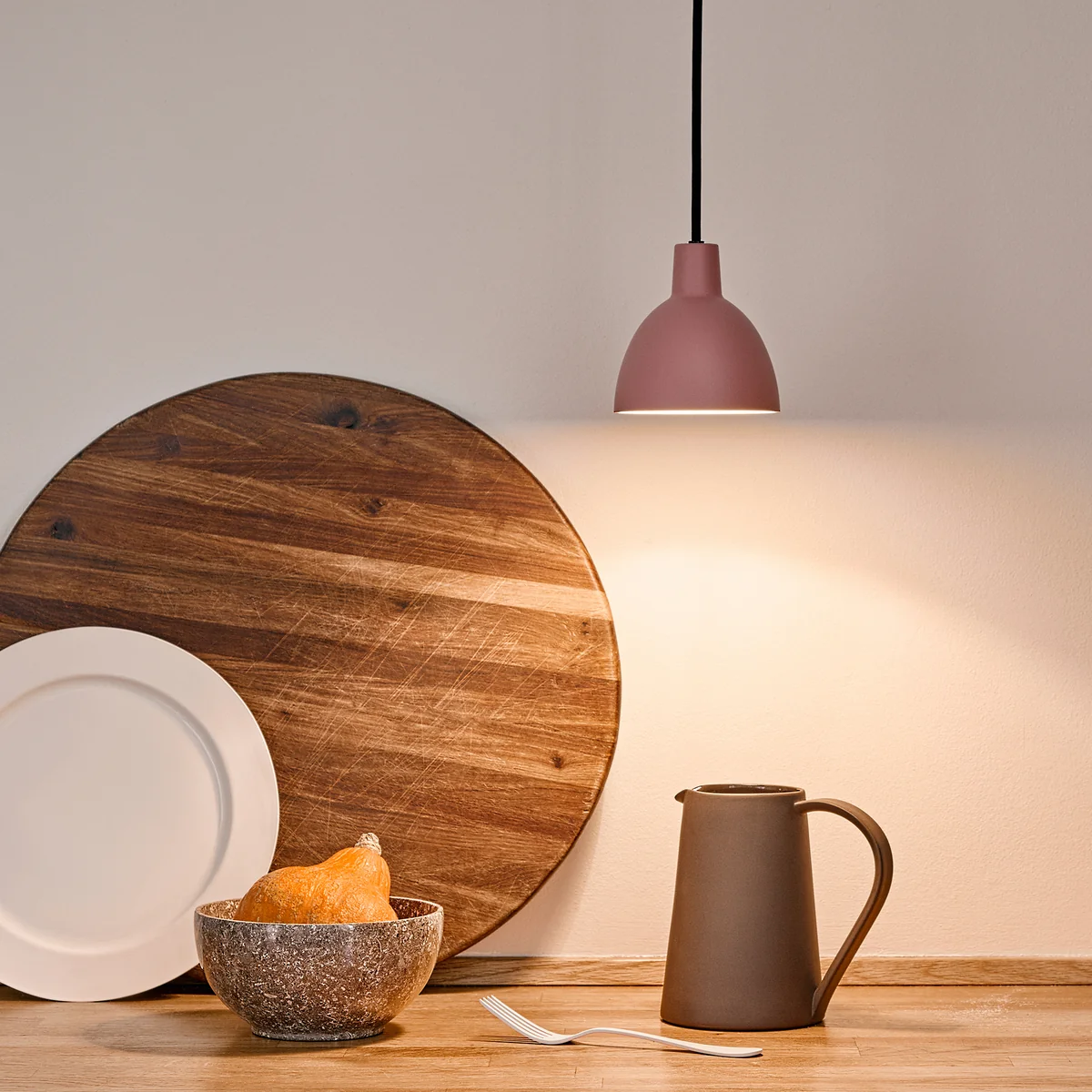 Met de Toldbod pendelarmatuur Louis Poulsen vult de Toldbod armaturenfamilie met een eenvoudig product dat past in elke privé- of openbare ruimte. Ronde vormen en delicate kleuren bepalen het design van de armatuur, die werd ontworpen volgens het straatverlichtingsconcept van Poul Henningsen. Een uitgekiend reflectorgedeelte zorgt voor een niet-verblindend, naar beneden gericht licht, waarmee werkplekken en eettafels optimaal kunnen worden verlicht.