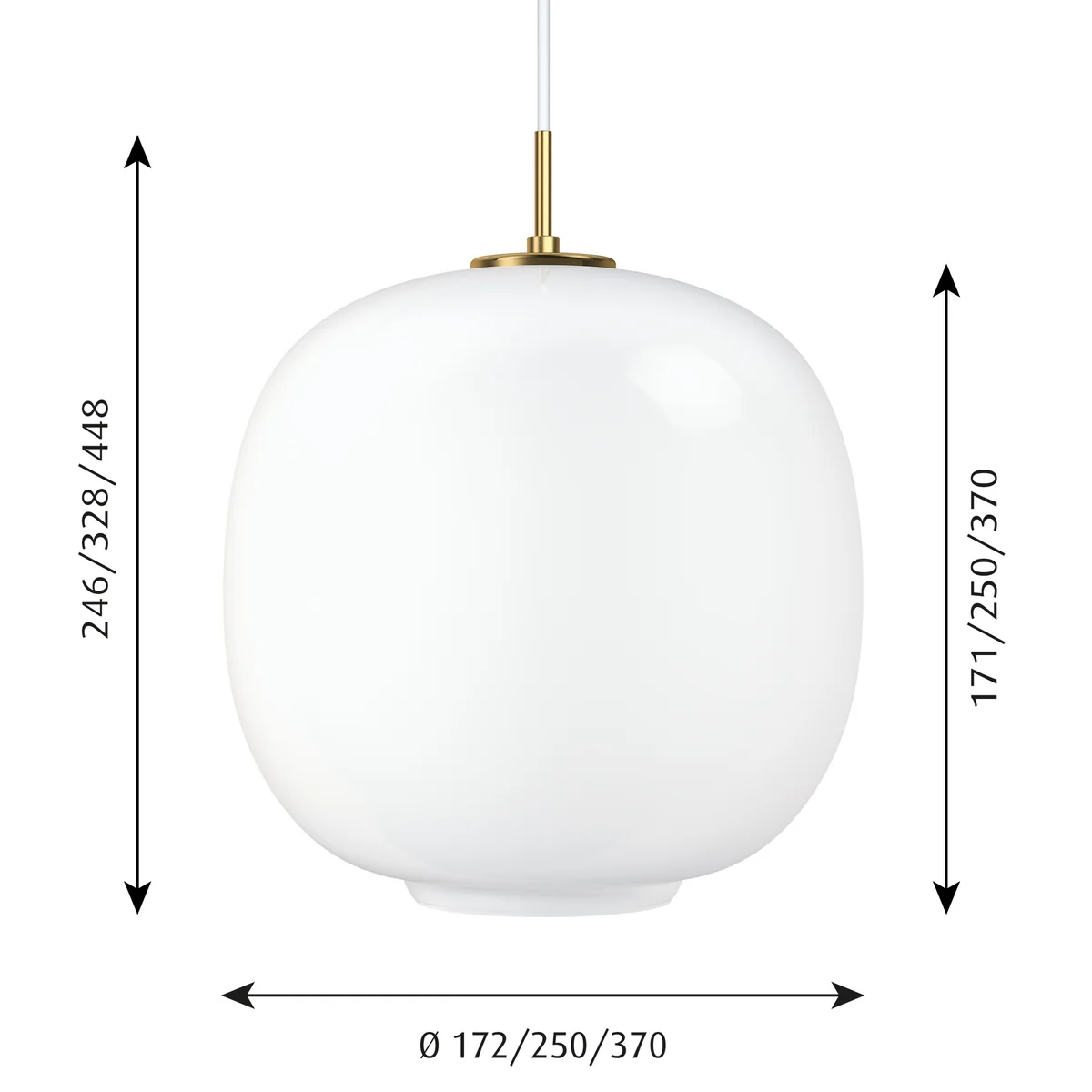 De Radiohus hanglamp bestaat uit drie lagen mondgeblazen glas. De binnenste laag bestaat uit transparant, helder glas, de middelste laag uit wit glas en de buitenste laag uit transparant, helder glas.