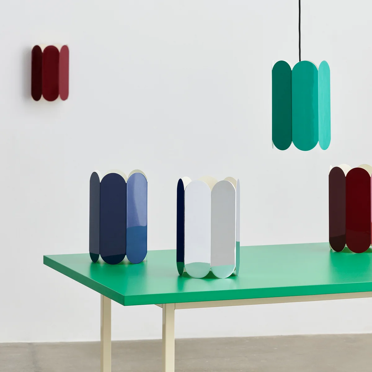 De Arcs lampenkap van HAY bestaat uit verschillende bogen die zijn samengevoegd tot een lichaam. Deze stijlvolle compositie creëert een ruimtelijk volume dat speelt met licht en vorm, waardoor het een hoogtepunt wordt op elke vensterbank, tafel of ladekast. De lampenkap heeft een elegant, diep silhouet dat zowel als hanglamp als tafellamp gebruikt kan worden. De Arcs lampenkap is gemaakt van staal en is verkrijgbaar in verschillende versies. De Arcs kandelaar is ontworpen door het Belgische ontwerpersechtpaar Muller Van Severen en weerspiegelt hun passie voor architectuur en materialen.