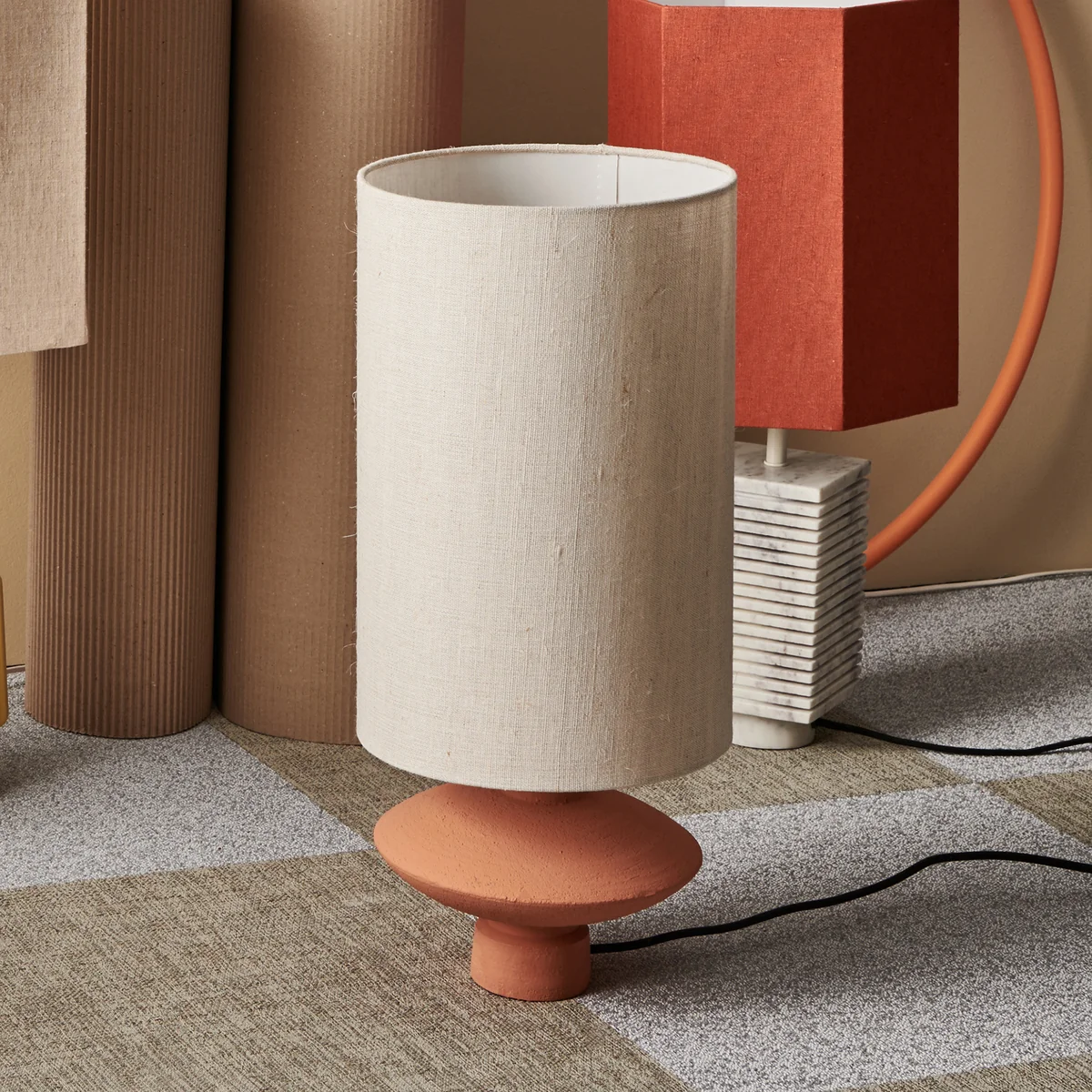 De tafellamp straalt een flair van natuurlijkheid en gezelligheid uit. De eenvoudige cilindervormige stoffen kap oogt doorschijnend en modern. Wanneer de lichtbron wordt ingeschakeld, komen de structuur en de kleur van het natuurlijke linnenweefsel zeer effectief en warm naar voren. De lampenkap kan worden aangevuld met tafellampvoeten met een E27 fitting en fungeert als een zeer passende aanvulling voor woon- en slaapkamers in de Scandinavische woonstijl.