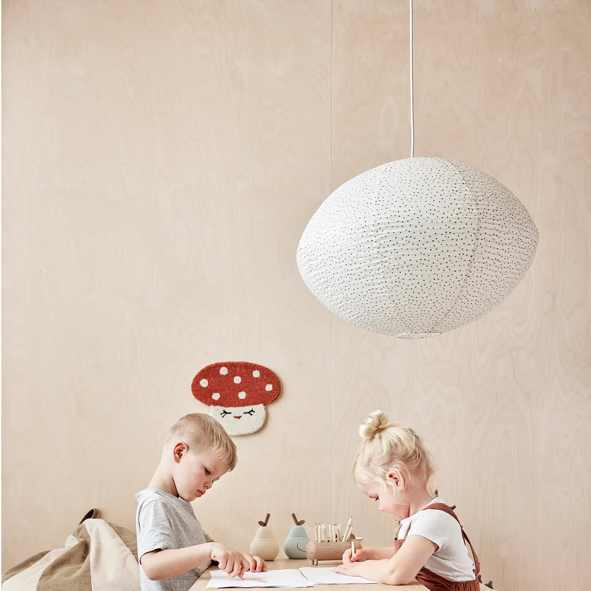 De Moyo lampenkap van OYOY is de perfecte aanvulling op je collectie verlichting in huis! Gemaakt van lichtgewicht papier en een stevig staaldraad frame, heeft deze lampenkap een klassiek en mooi rond lantaarn ontwerp met een subtiele print.