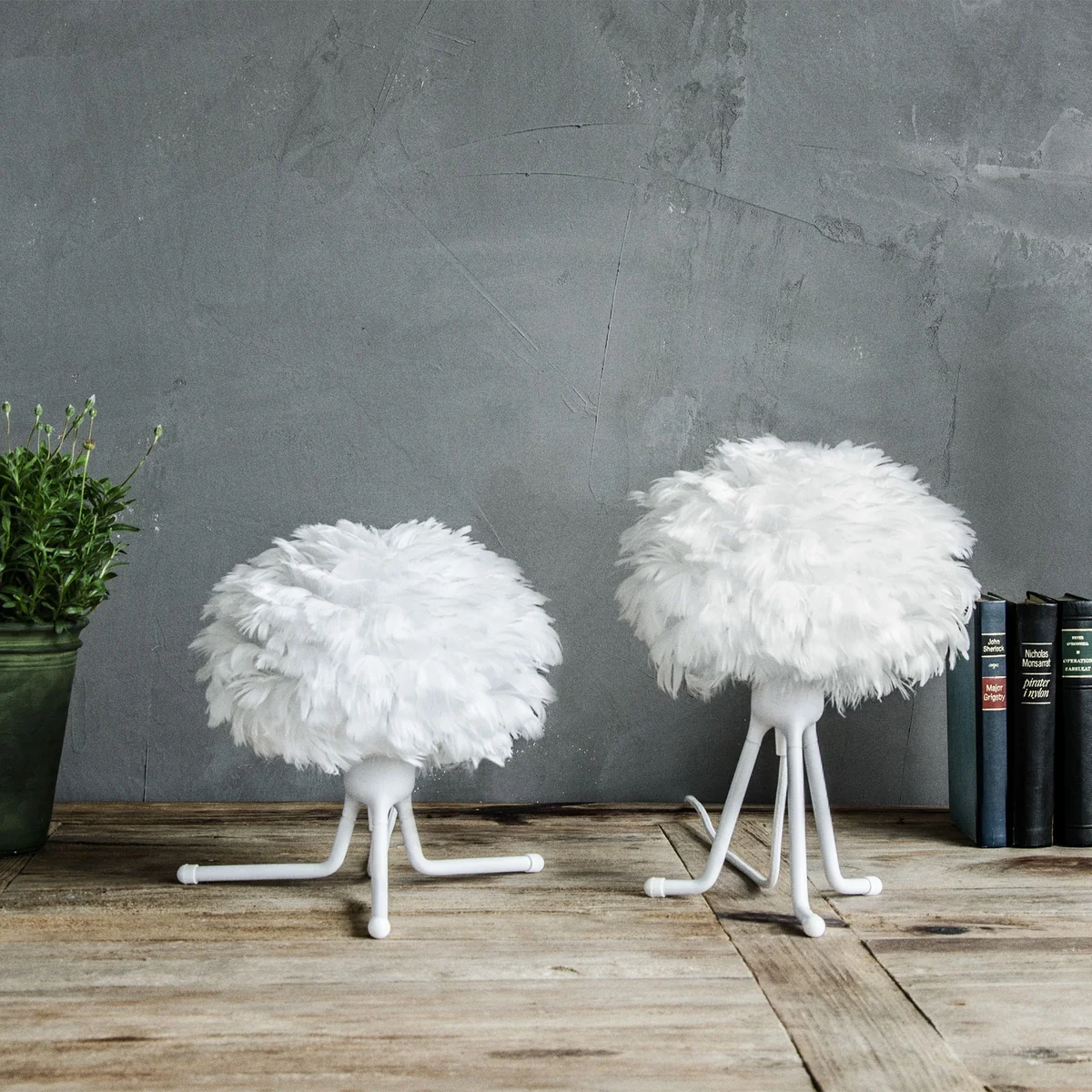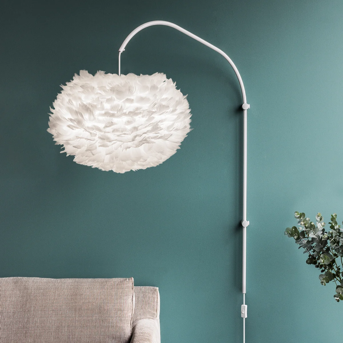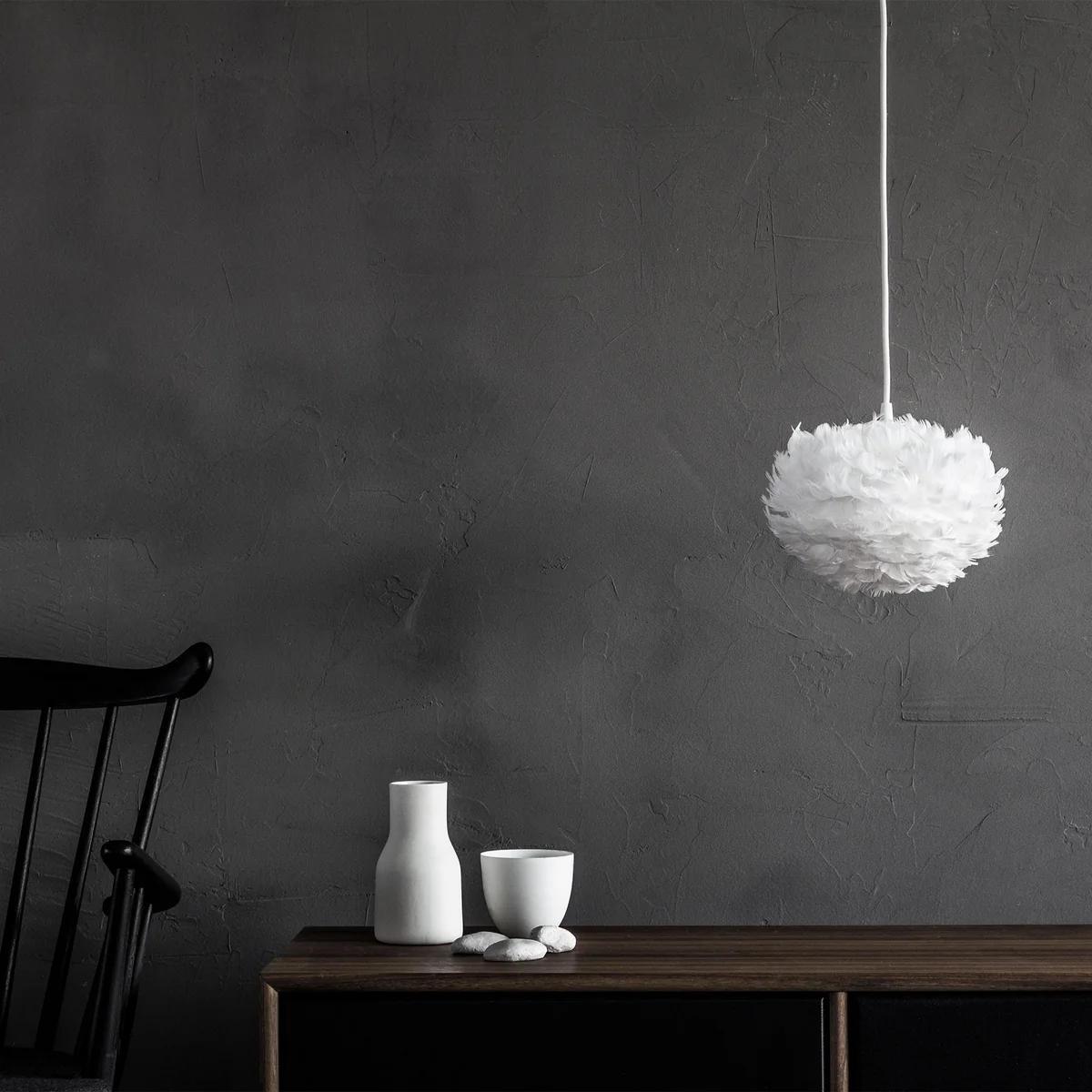Elke individuele veer wordt zorgvuldig met de hand bevestigd aan de Umage Eos hanglamp. Gedempt door de veren straalt de Eos armatuur in een warm, indirect licht. Dit maakt de verenlamp bijzonder geschikt voor gebruik in woon- en slaapkamers - waar de lamp Umage een gezellige en sfeervolle stemming creëert.