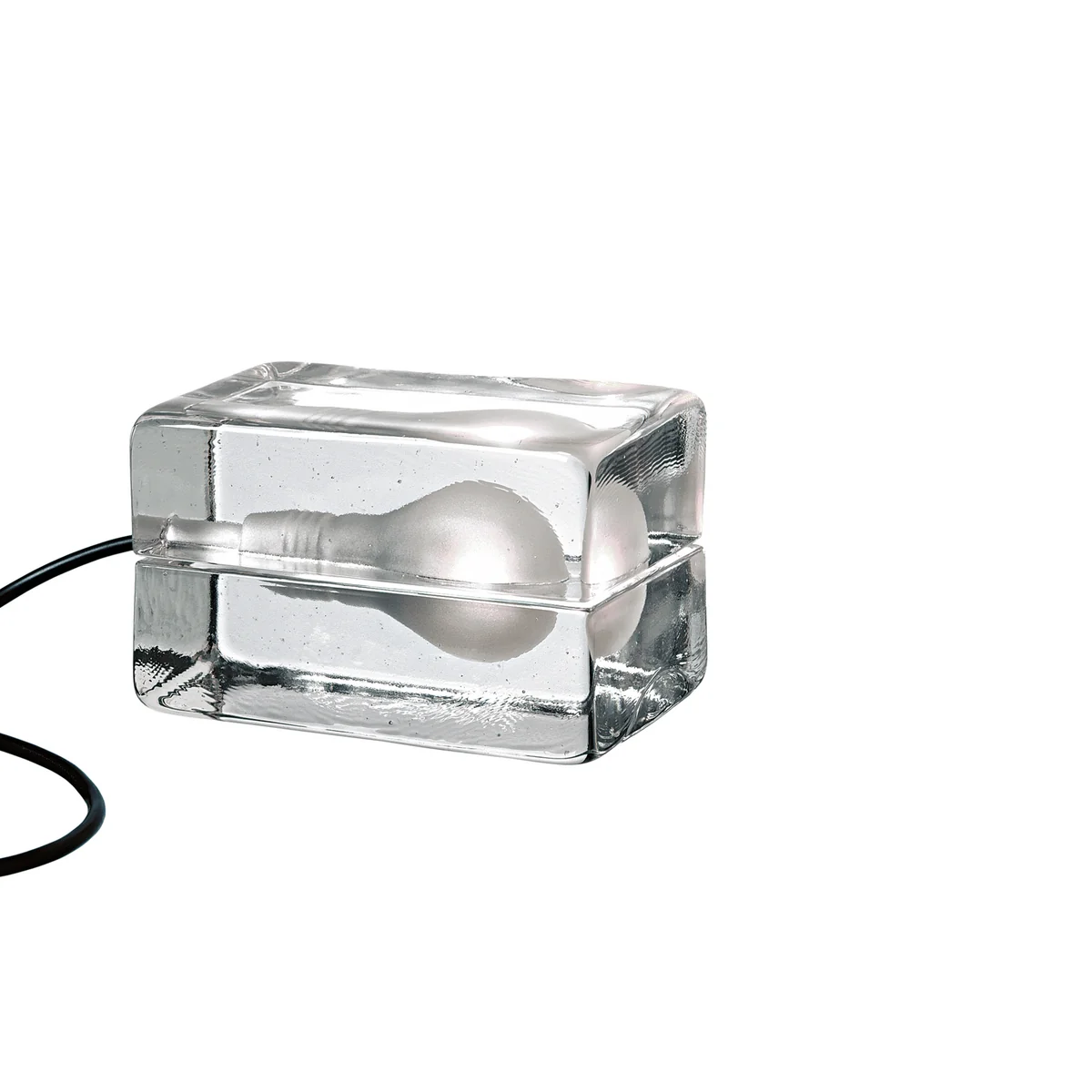 De LED Block Lamp is gemaakt van handgegoten helder glas, dat in een complex afkoelingsproces wordt verwerkt. Dit geeft de lamp de illusionaire aantrekkingskracht van een massief ijsblok. Beide glashelften sluiten de (E 14) lamp perfect in om een sfeervolle verlichting op de tafel of op de vloer te garanderen.