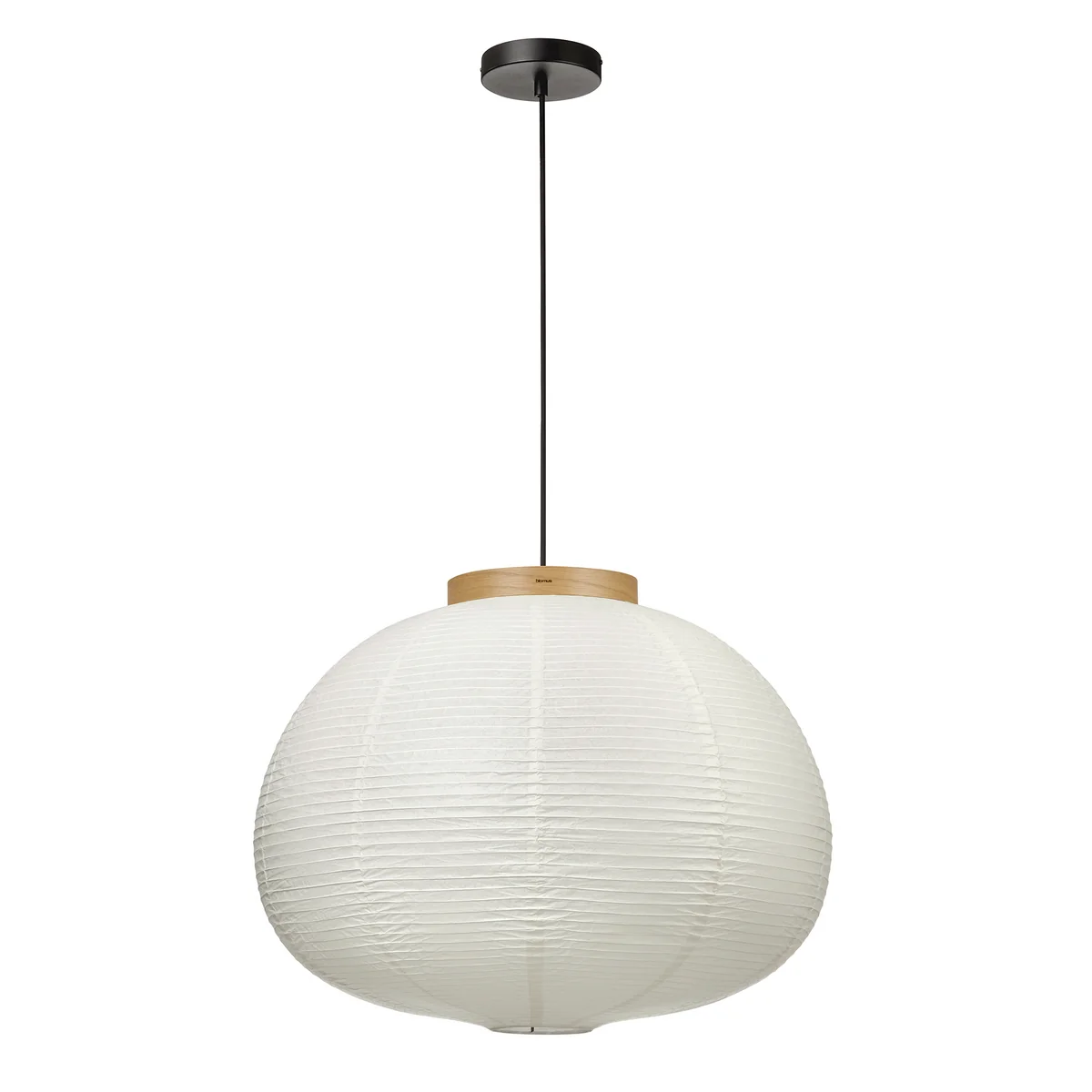 De lamp wordt gedemonteerd geleverd. Om te installeren wordt de rijstpapieren kap voorzichtig over de matzwarte gepoedercoate metalen structuur geschoven. Na het inschroeven van een geschikte E27 LED lamp (niet inbegrepen), kan de hanglamp flexibel geïnstalleerd worden in de gewenste plafondpositie.