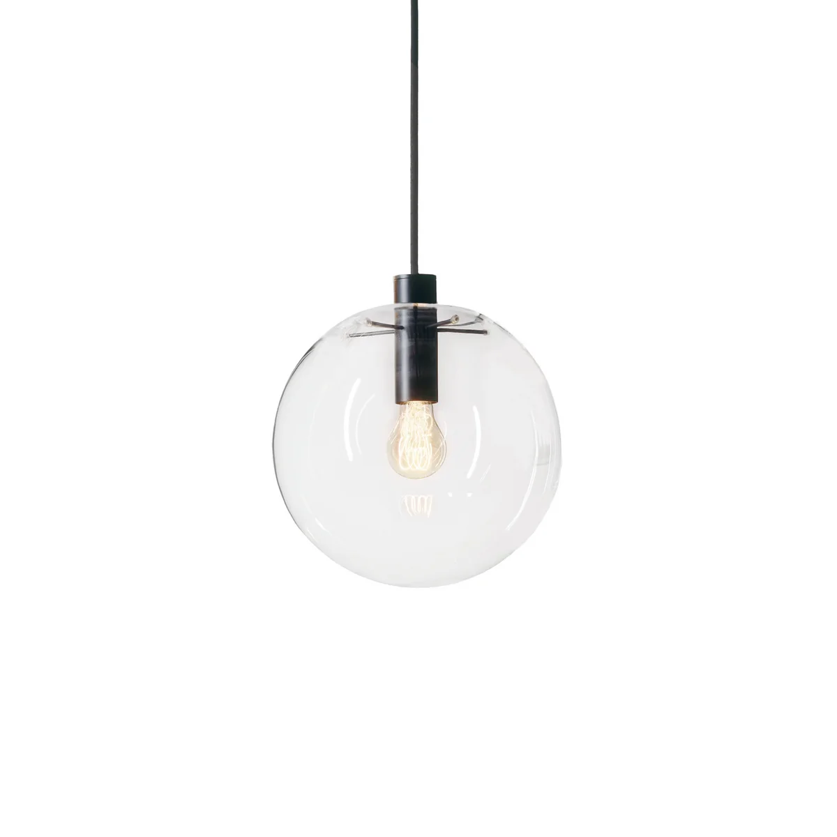 Optische openheid is het basisprincipe van de ClassiCon Selene pendelarmatuur: de handgeblazen heldere glazen bol van de Selene maakt de diffuser zichtbaar, die net als de glazen bol een helder, geometrisch design heeft en aan een vijfarmige armatuurkop hangt. De zwarte, met stof beklede kabel vervolledigt de hoogwaardige indruk.