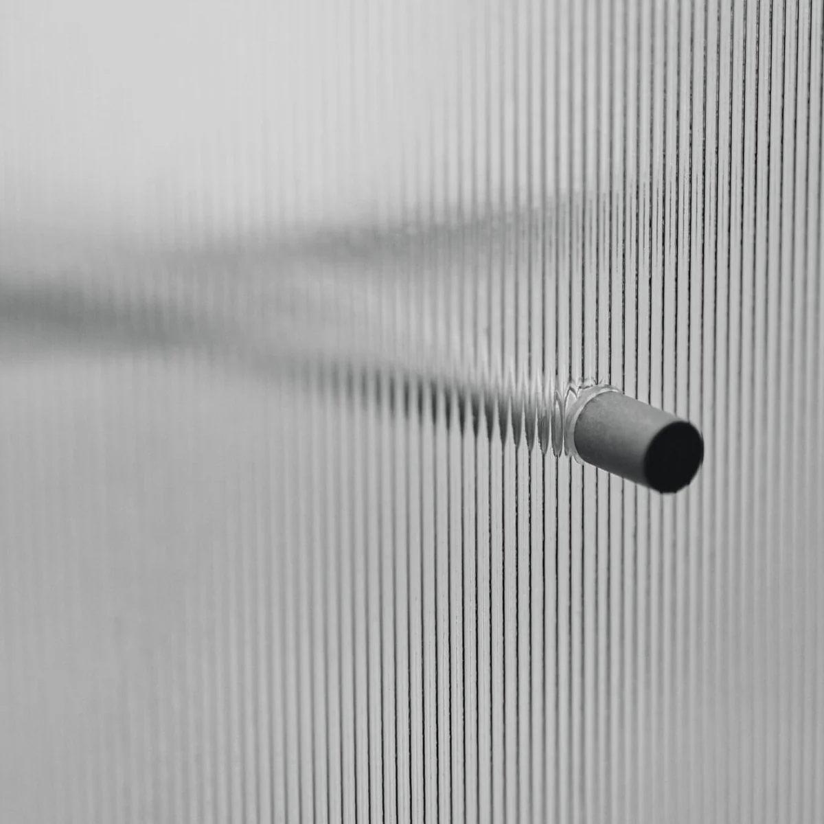 Drie travertijnen panelen omringen de centrale lichtbron en creëren een fascinerend spel van licht en schaduw. De natuurlijke textuur van de steen versterkt het warme, diffuse licht en creëert een zachte, architecturale sfeer. De armatuur wordt plat verpakt geleverd, is eenvoudig te installeren en biedt een expressieve, functionele verlichtingsoplossing voor elke ruimte.