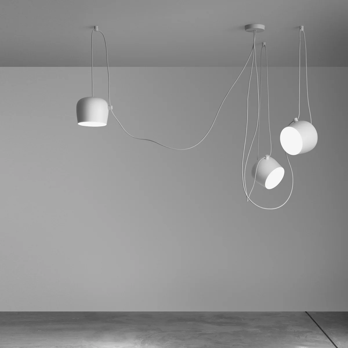 Het eerste van deze principes is het geometrische middelpunt van het lichtpunt: armaturen worden gewoonlijk centraal in ruimten opgehangen. Bij de AIM pendelarmatuur speelt dit principe niet langer een rol; de aarding gebeurt via lange kabels. Als tweede principe breken de twee ontwerpers met de veronderstelling dat de kabel louter een middel is om een doel te bereiken en dus verborgen moet blijven: Met de AIM van Flos kan een kabelbos ontstaan, met onstuimige lijnen en als esthetische functie.