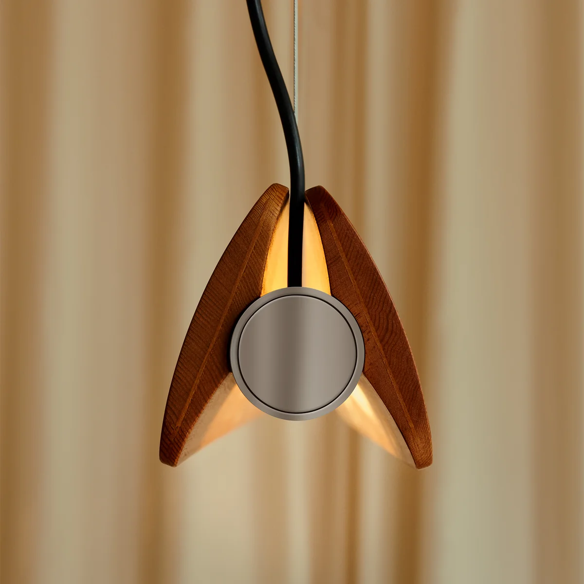 - Hanglamp met roterende essenhouten vleugels en verchroomde fittingen
