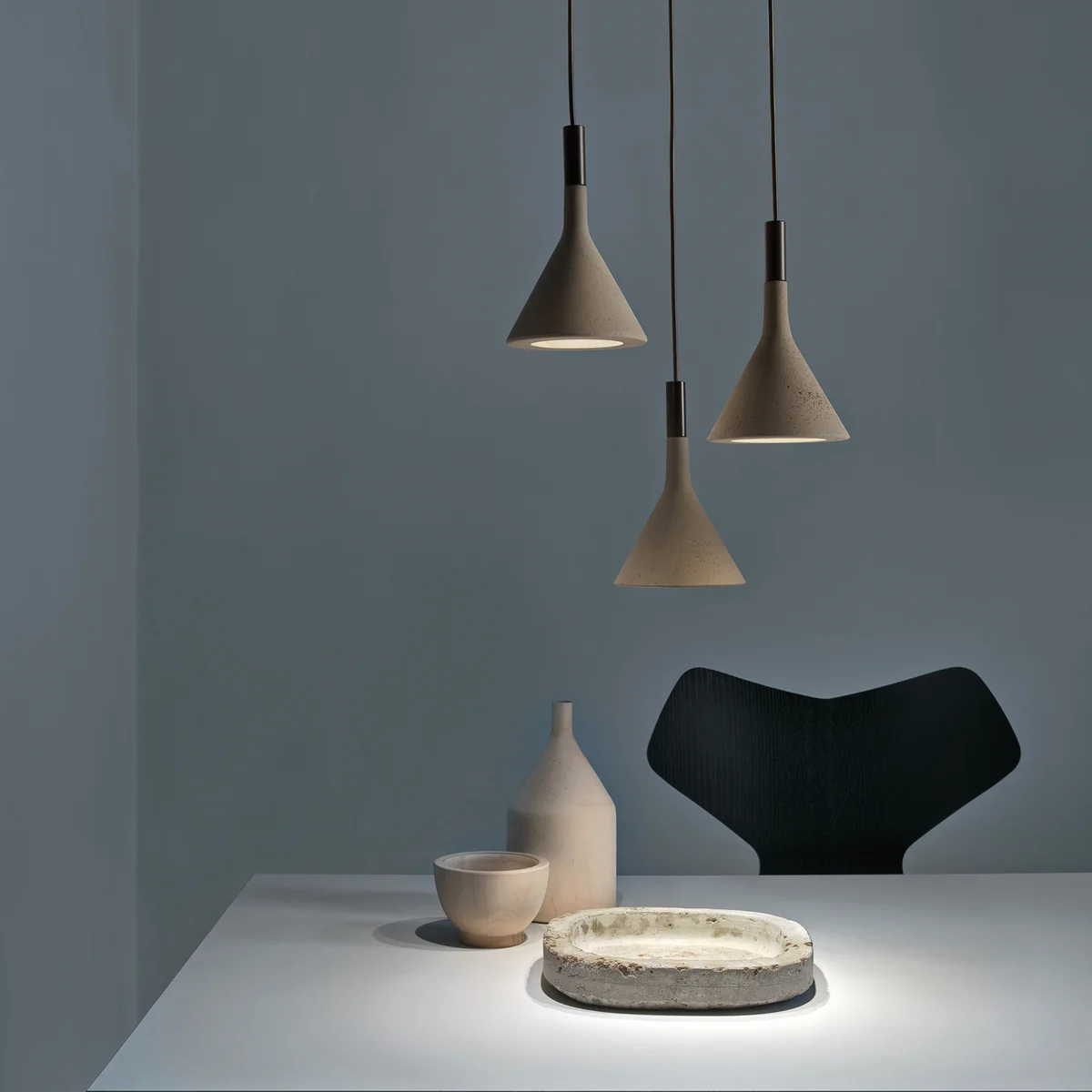 Het ontwerp voor deze lamp is afkomstig van het designteam LucidiPevere en maakt het licht discreet in zowel residentiële als openbare gebouwen. De ongebruikelijke betonnen hanglamp maakt een directe en gerichte verlichting van het onderliggende gebied mogelijk.