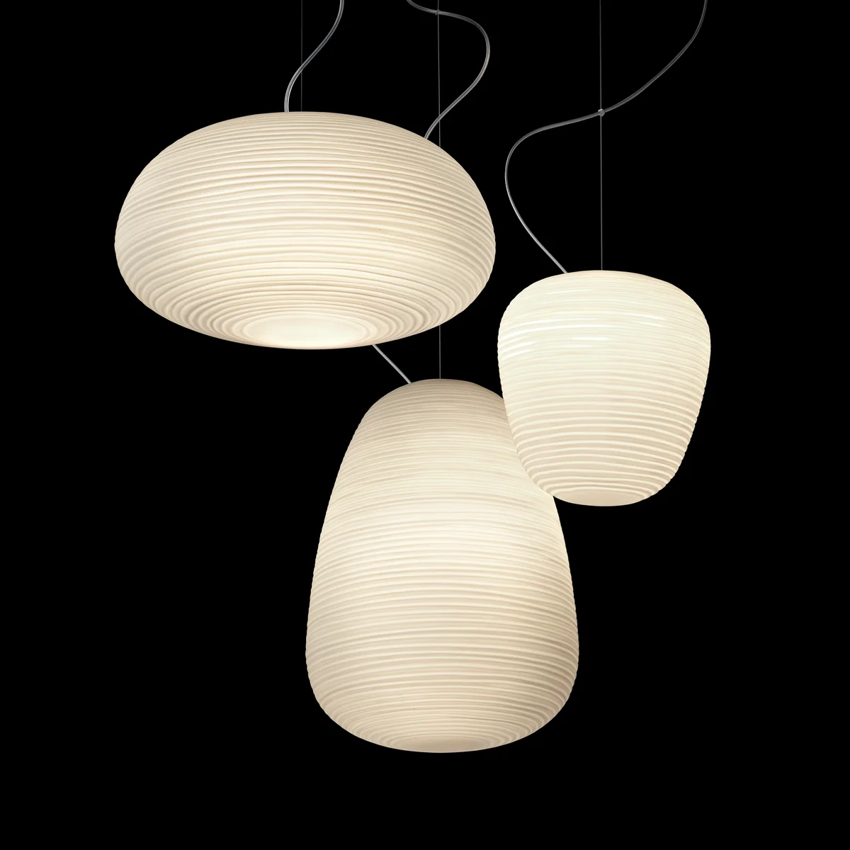 Met zijn diffuus licht is de Rituals hanglamp geschikt voor een grote verscheidenheid aan kamers en herinterpreteert de magie van rijstpapier of moerbeibast - de grondstoffen voor Japanse lampen - door geblazen en gesatineerd glas op een fysieke en kostbare manier te gebruiken. Horizontale lijnen die door het oppervlak van de armaturen lopen, creëren een zacht en fascinerend decor en helpen tegelijkertijd de intensiteit van de lichtbron te dempen en een vol, warm en zacht licht te verspreiden.