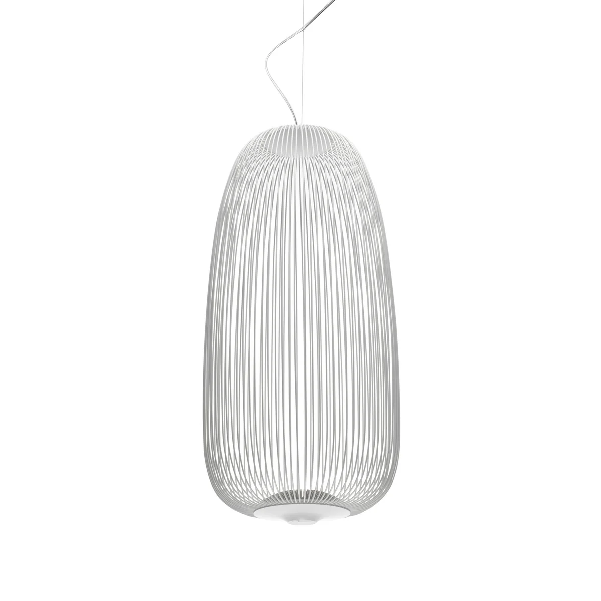 Geïnspireerd door de spaken van een wiel, doet de vorm van de Spokes lamp van Foscarini denken aan filigraanlantaarns of volières. In zijn filigrane vorm lijkt de hanglamp bijna gewichtloos. De lamp, die in 2014 is ontworpen door het Spaanse, Italiaanse designduo Garcia Cumini, bestaat uit stevige metalen strengen.