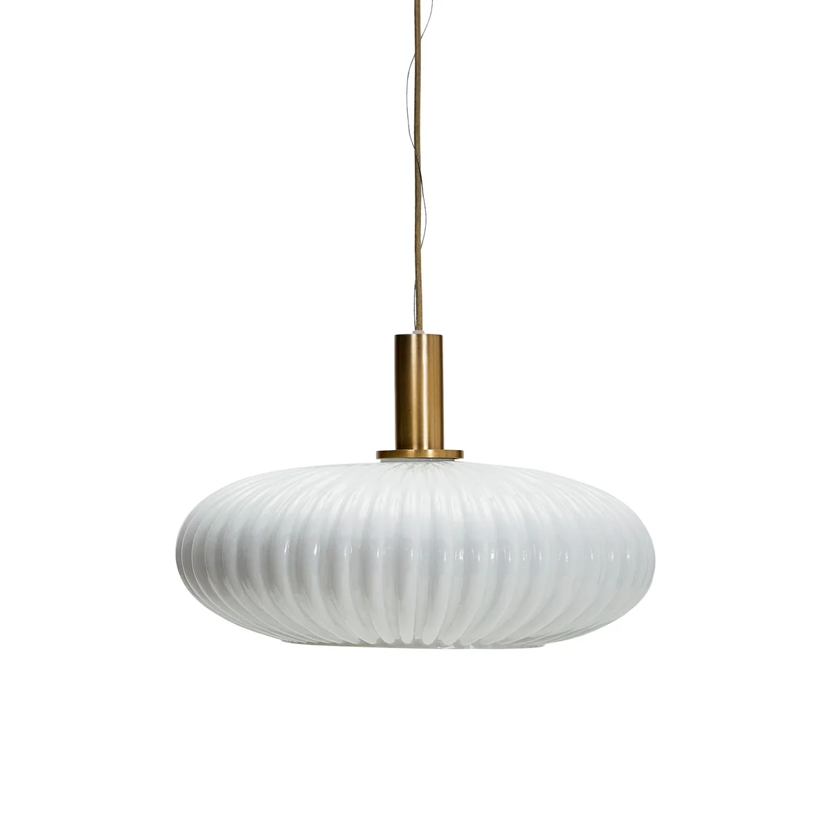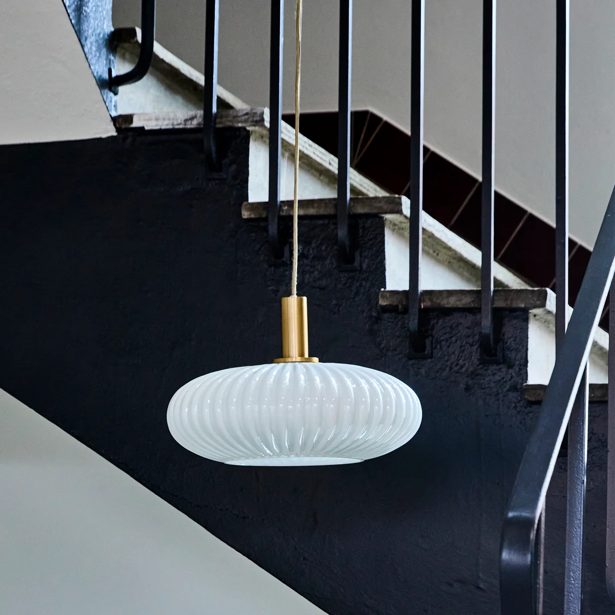 De Fort hanglamp van House Doctor combineert handgemaakt, gegroefd glas in beige met geborsteld messing accenten om een stijlvol, tijdloos accent in je huis te creëren. Het zachte, sfeervolle licht creëert een uitnodigende sfeer boven de eettafel, in de woonkamer of in de gang en maakt de lamp tot een decoratief hoogtepunt in elke kamer.