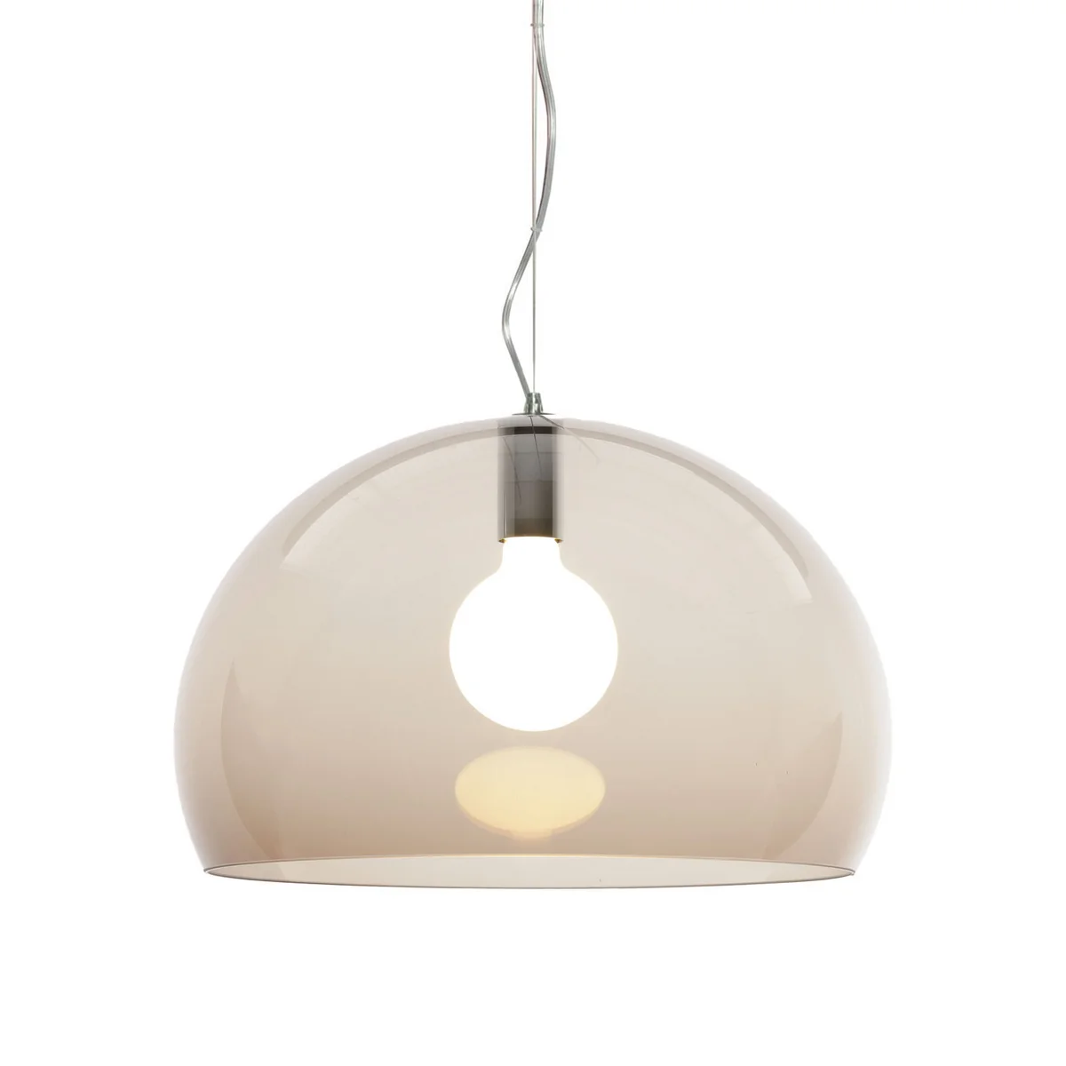 Als kleurrijke variant voor de kinderkamer, in zwart of wit voor de keuken of in een van de elegante metaaltinten voor de woonruimte, is de Fly pendelarmatuur van Kartell een klassieke, veelzijdige verlichting die verkrijgbaar is in een groot aantal verschillende kleuren, evenals een "kleine" variant voor kleinere woonruimtes.