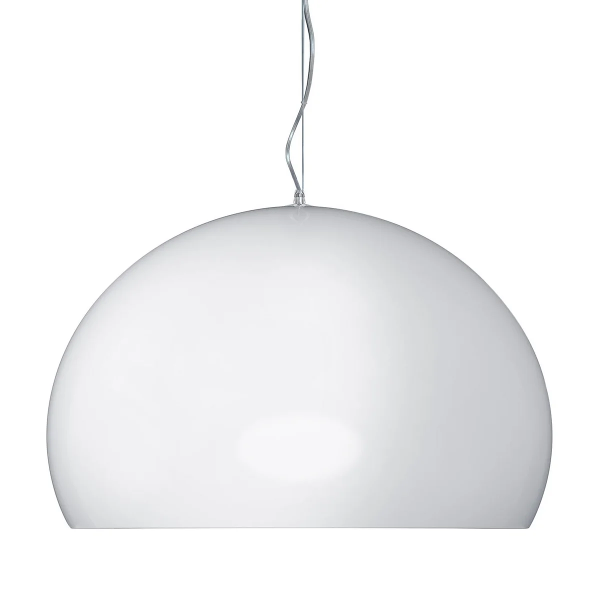 De lampenkap of de koepel van de FLY pendelarmatuur is niet perfect halfrond: de maaihoogte ligt iets onder de diameterhoogte, die het uitgaande licht bundelt. Dit maakt de armatuur bijzonder geschikt voor spotverlichting aan de eet- of keukentafel of andere plaatsen waar geconcentreerd licht nodig is.