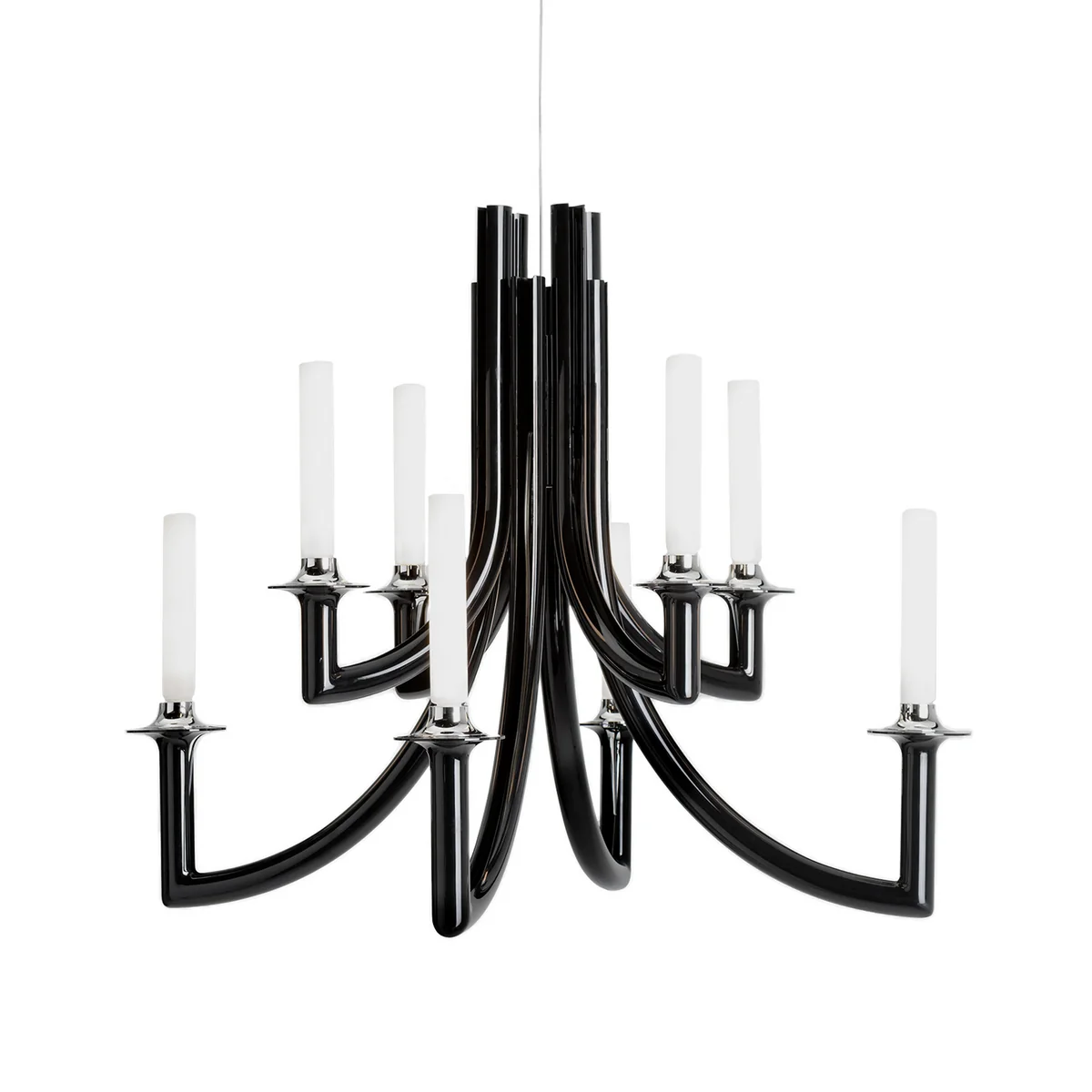 De Khan kroonluchter van Philippe Starck voor het Italiaanse label Kartell doet denken aan elementen uit de 1 8. eeuw. Het tegelijkertijd vrij minimalistisch-moderne ontwerp is een grote blikvanger. De kroonluchter is gemaakt van polycarbonaat 2. 0. Het materiaal is gemaakt van hernieuwbare grondstoffen uit de pulp- en papierindustrie. Verkrijgbaar in verschillende kleuren.