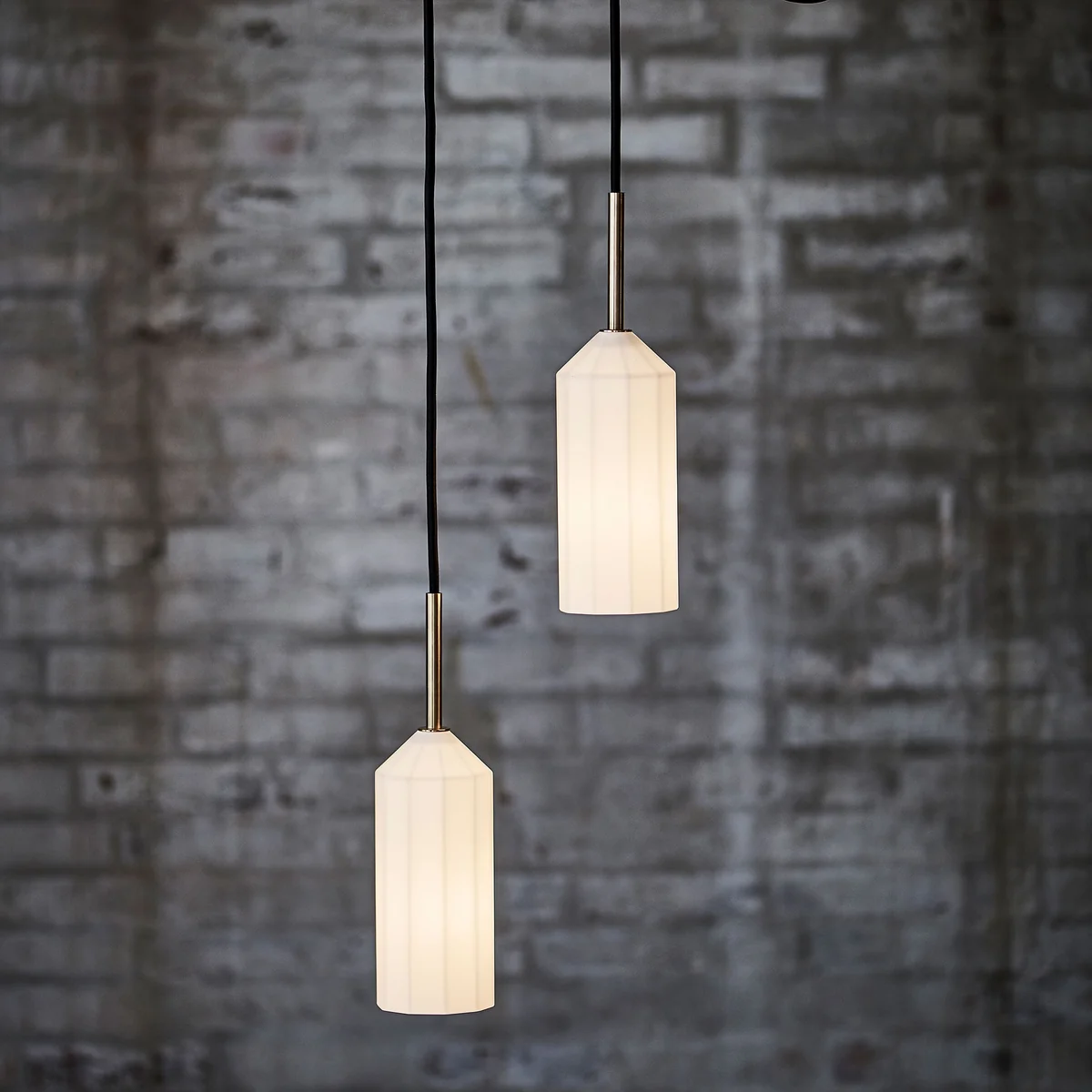 De Pliverré pendelarmatuur van Le Klint is een herinterpretatie van de iconische gevouwen lampenkappen van de fabrikant. In plaats van glas of kunststof is de kap van de Pliverré gemaakt van elegant opaalglas, wat de Christian Troels armatuur een bijzonder tijdloze uitstraling geeft.