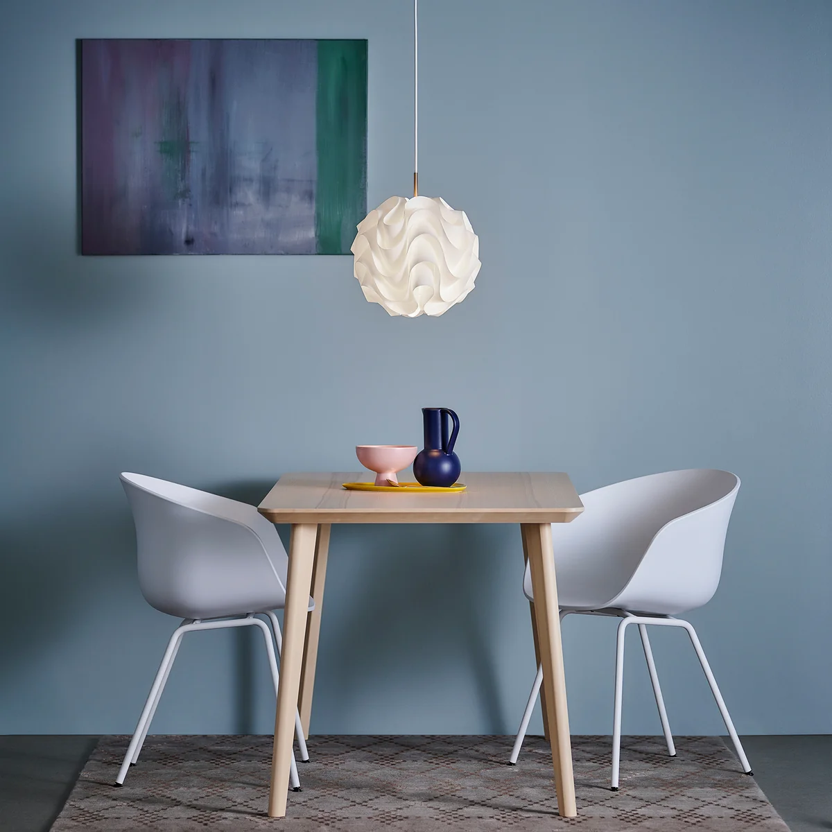 De pendelarmatuur Sinus van Le Klint valt vooral op door haar gebogen design. De ronde lampenkap is bijzonder decoratief, maar zorgt ook voor een aangenaam niet-verblindend en gedempt licht, dat elke kamer een aangenaam huiselijke sfeer geeft.