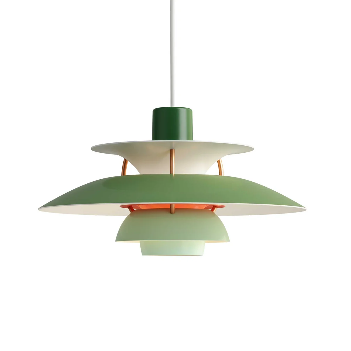 Henningsen ontwierp de PH 5 als reactie op de constante veranderingen in vorm en afmeting van gloeilampen. Hij ontwikkelde een armatuur die, ongeacht hoe de armatuur is gemonteerd en welk type lamp wordt gebruikt, altijd volledig verblindingsvrij bleef. Henningsen wilde ook de PH 5 gebruiken om de kleurweergave van de lamp te verbeteren. Kleine rode en blauwe schermen werden gebruikt als aanvulling op de kleur in het gebied van het spectrum dat het oog slecht waarnam - namelijk rood en blauw. Tegelijkertijd wordt het licht gedempt in het middelste geelgroene gebied, waar het oog het meest gevoelig is. De PH 5 Mini wordt gelanceerd met een innovatief nieuw kleurenpalet. De lamp speelt met de kleuren. Het begint met de donkerste toon bovenaan en wordt zachter van scherm tot scherm.
