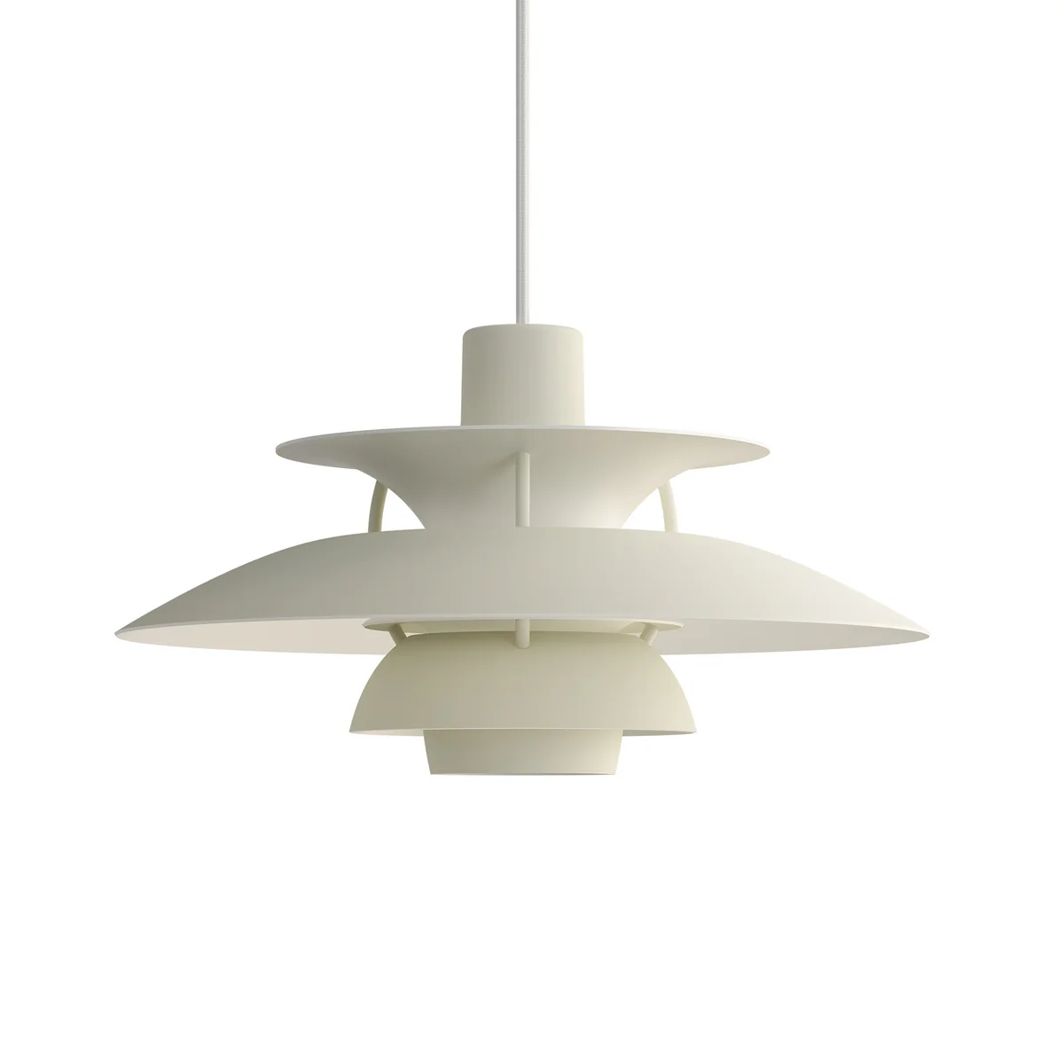 De naam PH 5 komt overeen met de diameter van de bovenste paraplu van 50 cm. De PH 5 mini-versie daarentegen heeft een diameter van slechts 30 cm en is daarom ideaal voor kleine ruimtes. Door het brede kleurenpalet kan de PH 5 Mini ook uitstekend opgehangen worden als expressief ensemble.