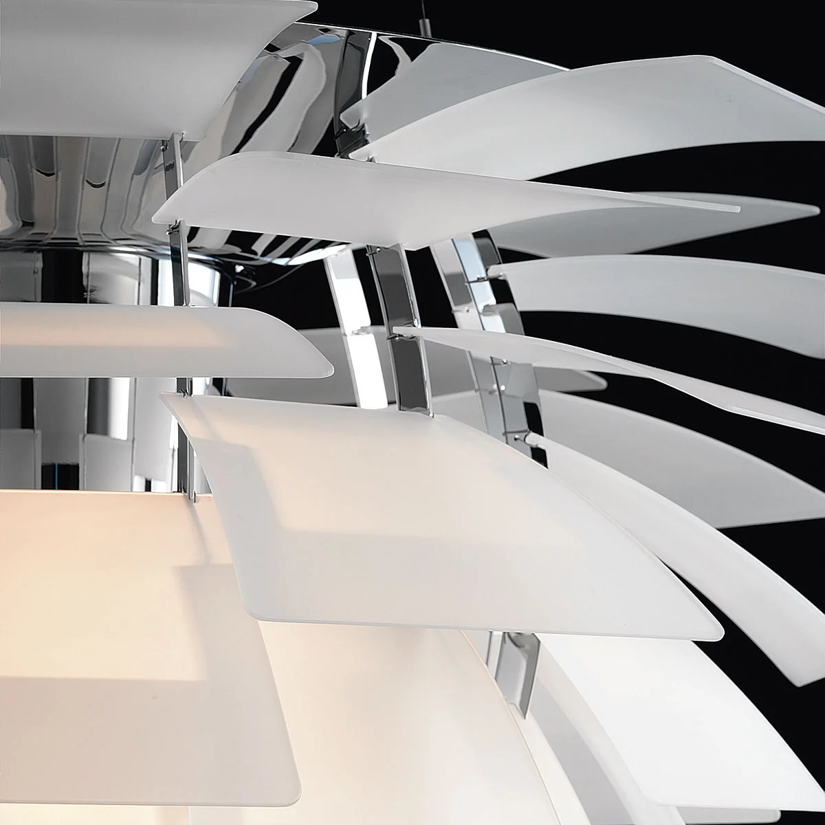 Omdat elke rij verschoven is ten opzichte van de vorige, kunnen alle 72 bladeren elkaar "bedekken", waardoor een rondom niet-verblindende armatuur ontstaat waarvan de lichtbron vanuit elk perspectief verborgen blijft. Het licht wordt doorgelaten en gereflecteerd op de bladeren eronder, waardoor een onderscheidende, unieke verlichting ontstaat. De eerste Artichokes werden ontwikkeld voor een restaurant in Kopenhagen, Langelinie Pavilion, waar ze vandaag de dag nog steeds hangen.