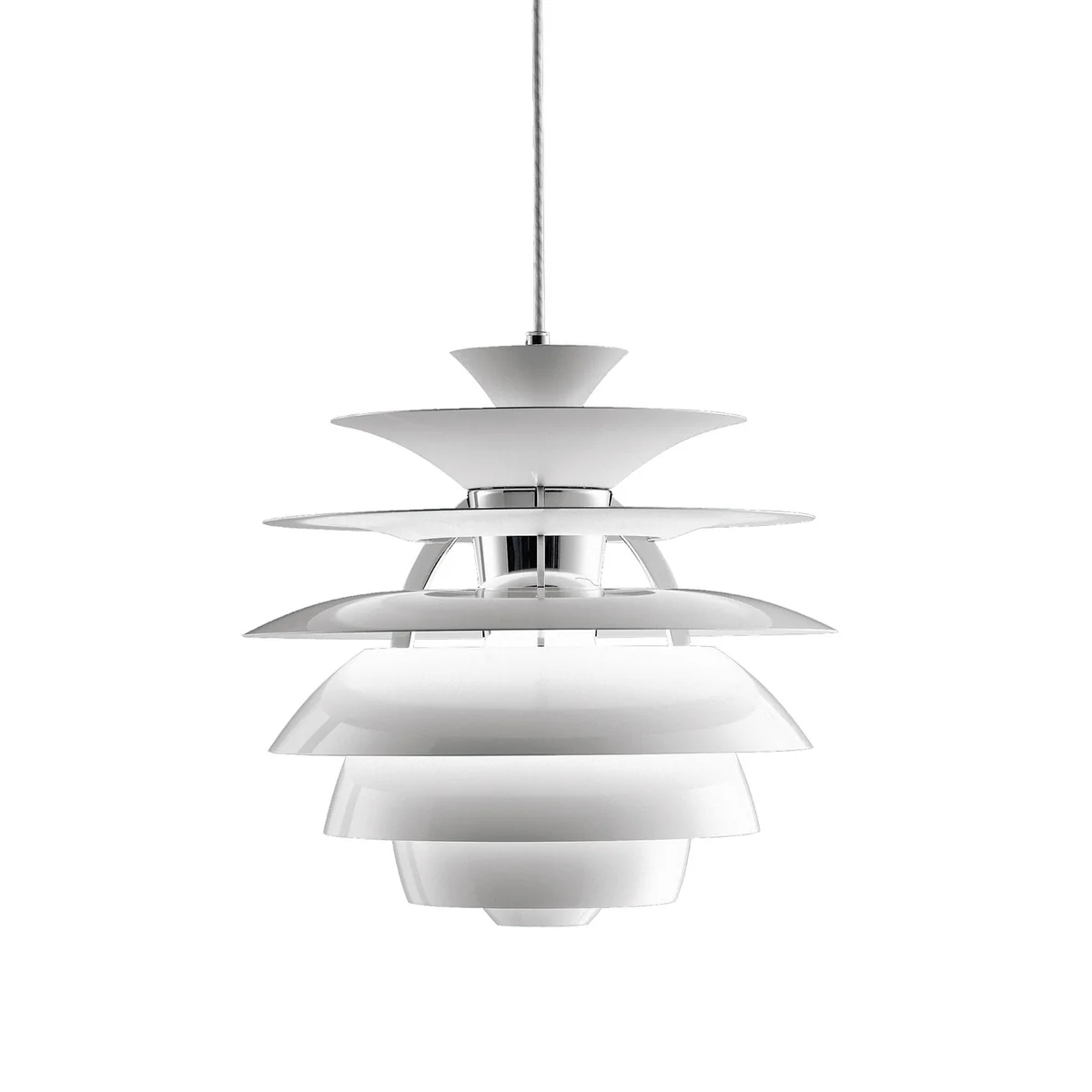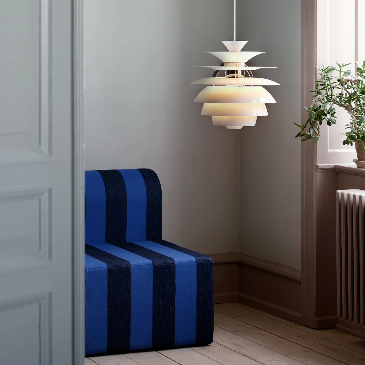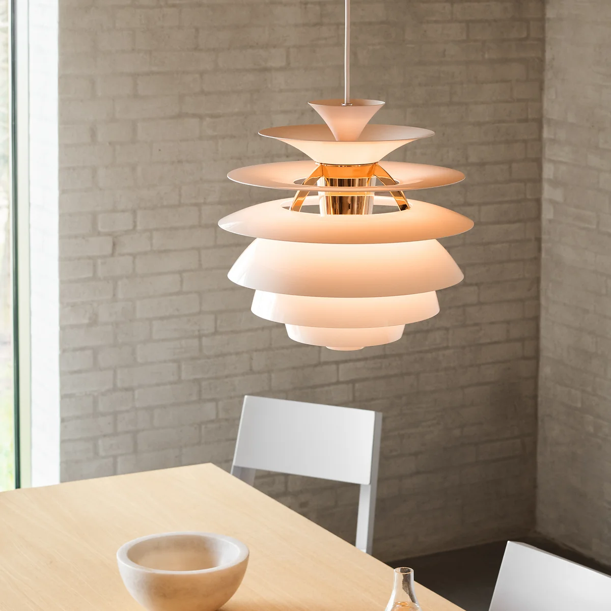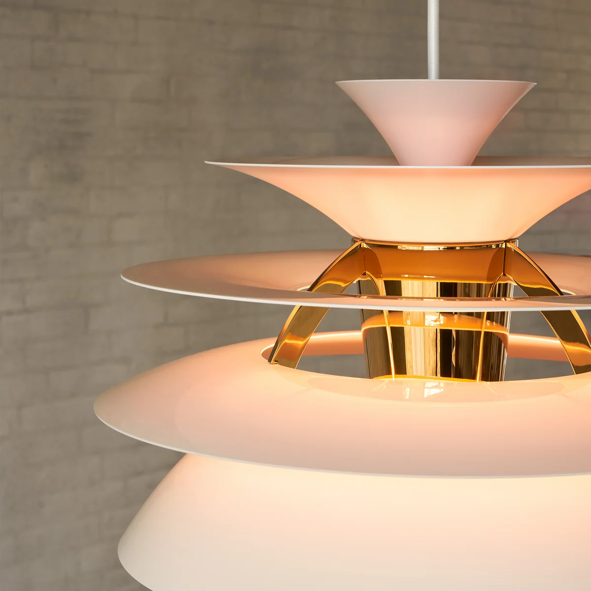 De PH Snowball is ontworpen volgens het principe van een reflecterend driescherm dat het meeste licht naar beneden richt. Louis Poulsen De pendelarmatuur straalt zowel naar beneden als naar de zijkanten, waardoor de ingeschakelde armatuur zichzelf verlicht en benadrukt.