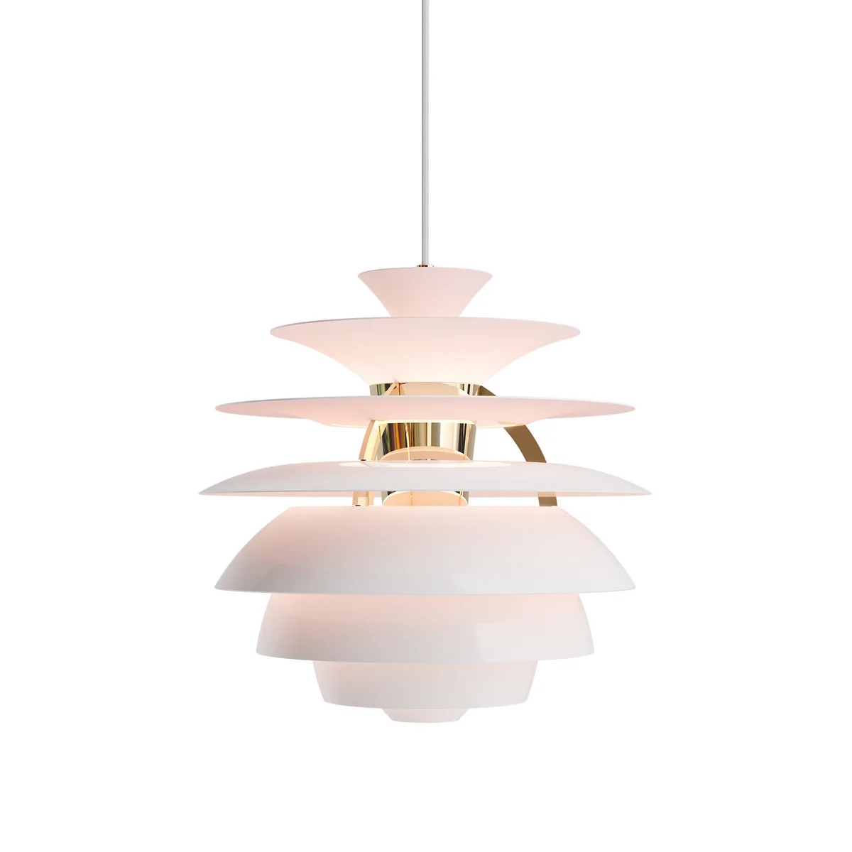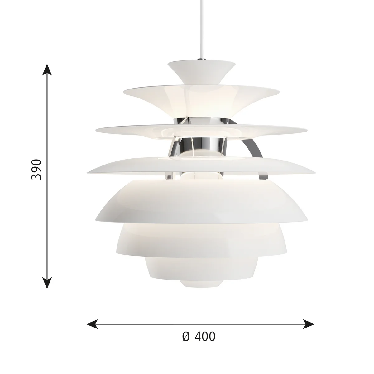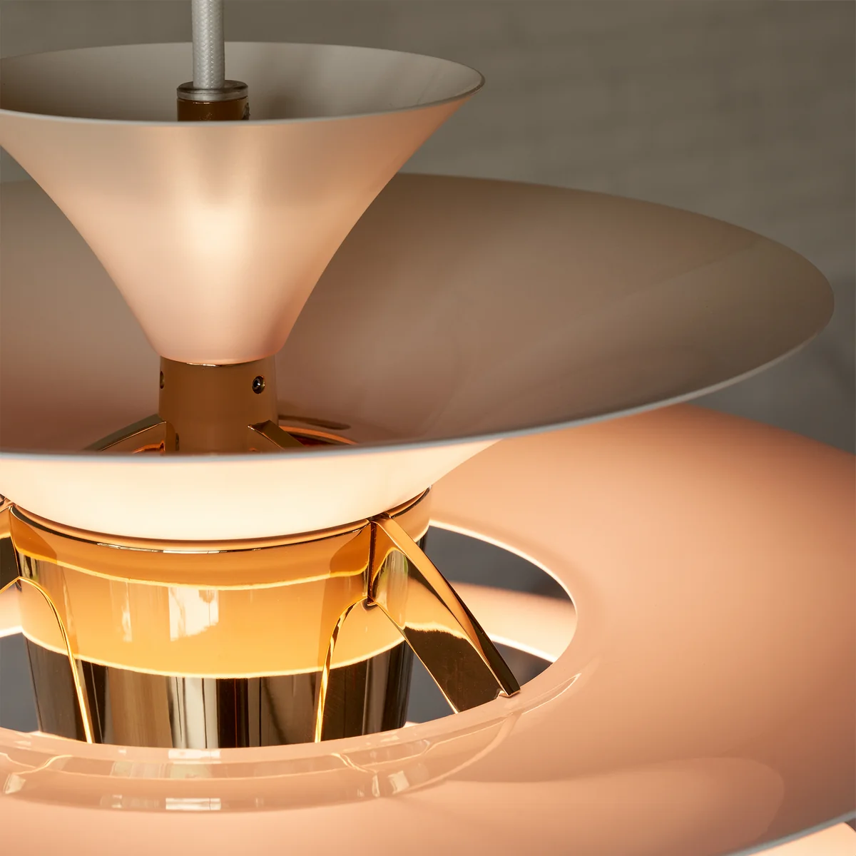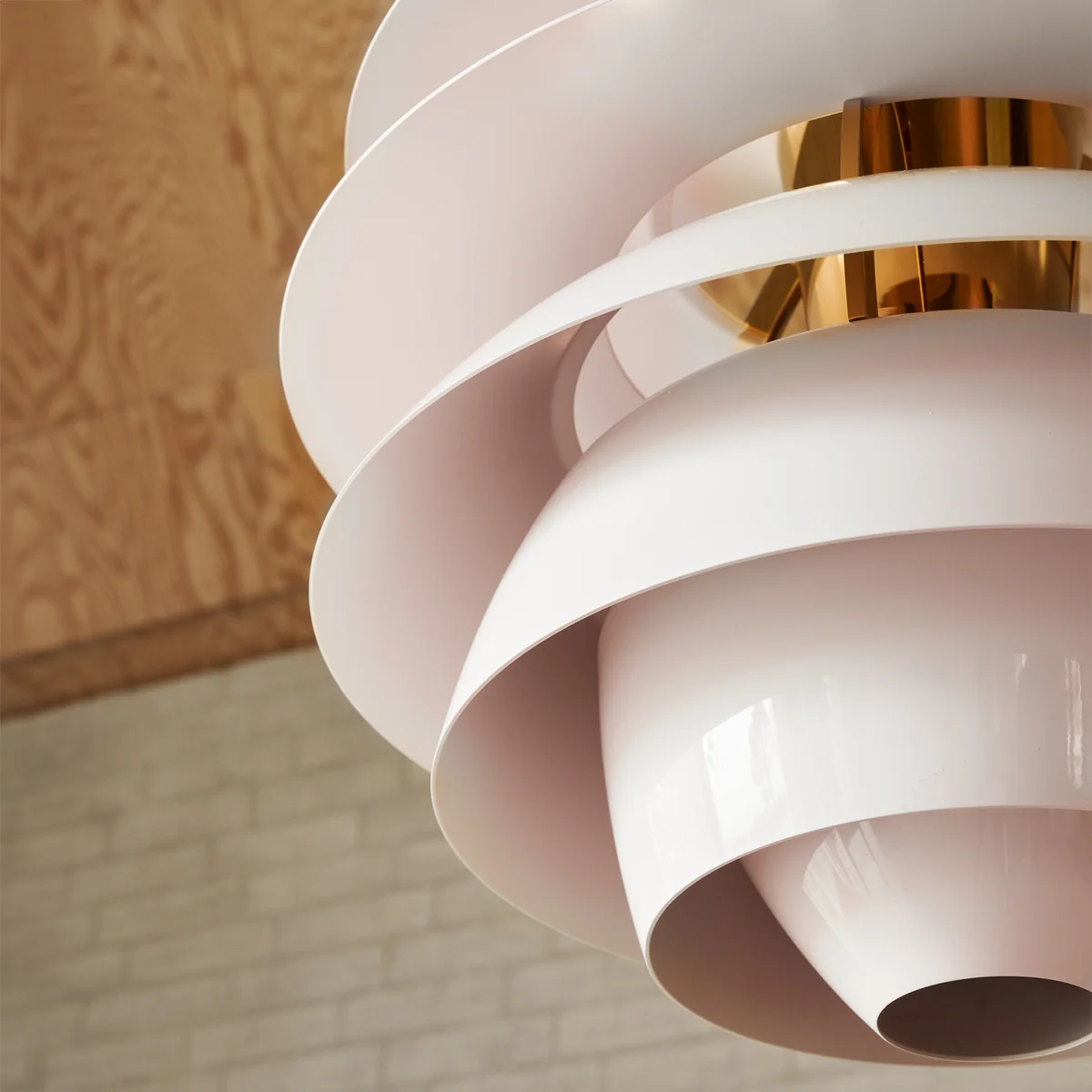 De PH Snowball is ontworpen volgens het principe van een reflecterend driescherm dat het meeste licht naar beneden richt. Louis Poulsen De pendelarmatuur straalt zowel naar beneden als naar de zijkanten, waardoor de ingeschakelde armatuur zichzelf verlicht en benadrukt.