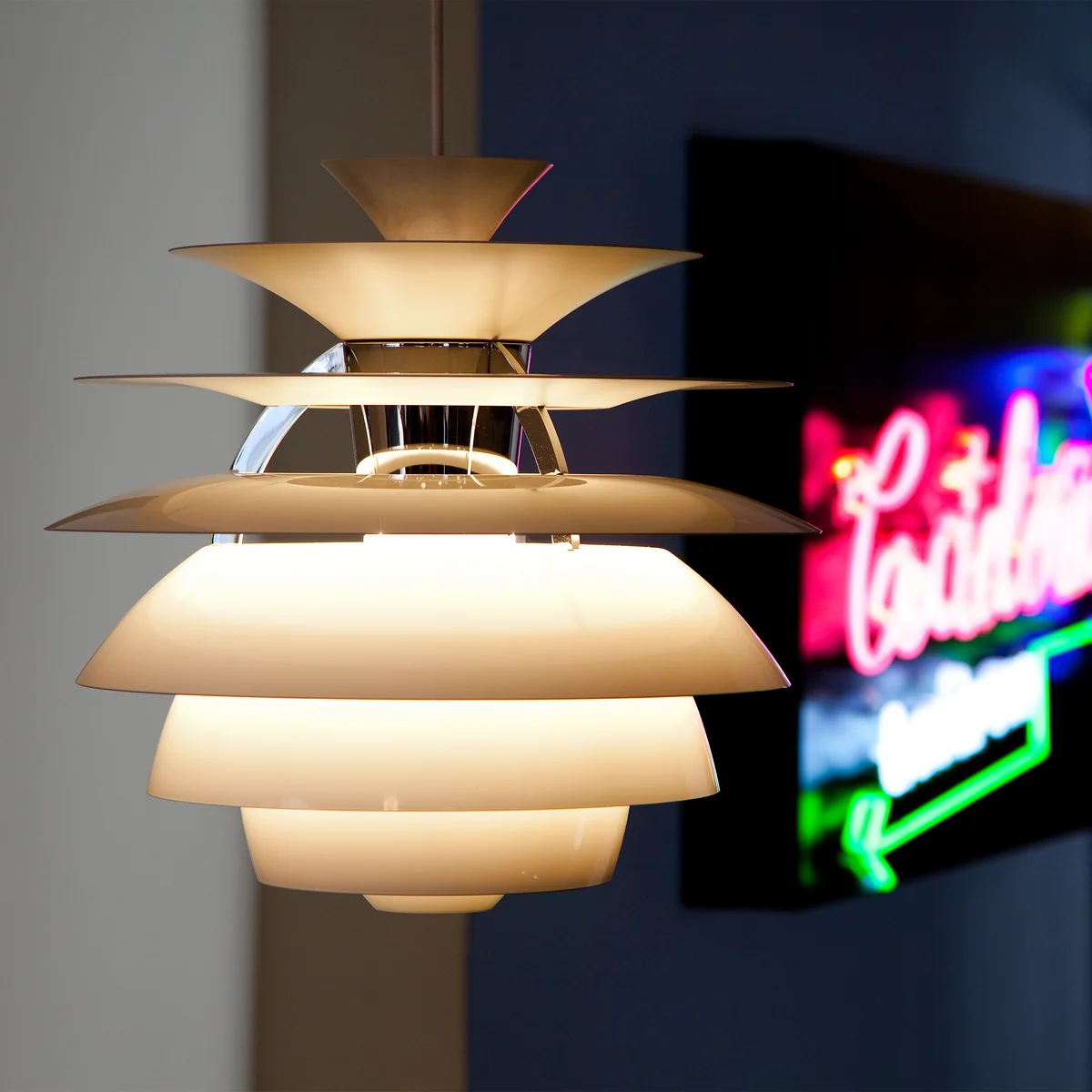 Net als Henningsens andere armaturen maakt ook de PH Snowball indruk met 100% niet-verblindend licht. De symmetrische lichtverdeling en de mix van matte en glanzende oppervlakken geven het armatuur een bijzondere lichtintensiteit. Deze eigenschappen maken de Snowball-armatuur geschikt voor gemiddelde en lage ophanghoogten in vergaderruimten, boven eettafels en nog veel meer.