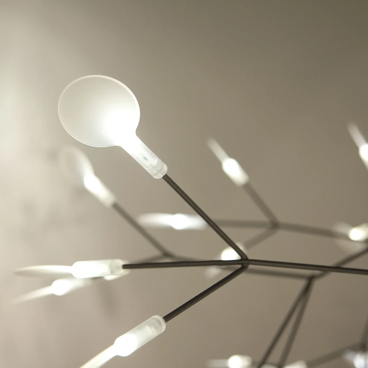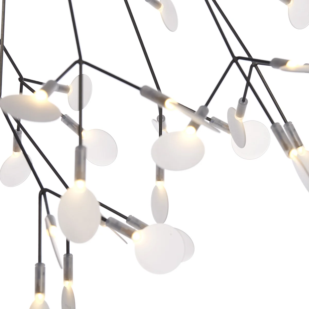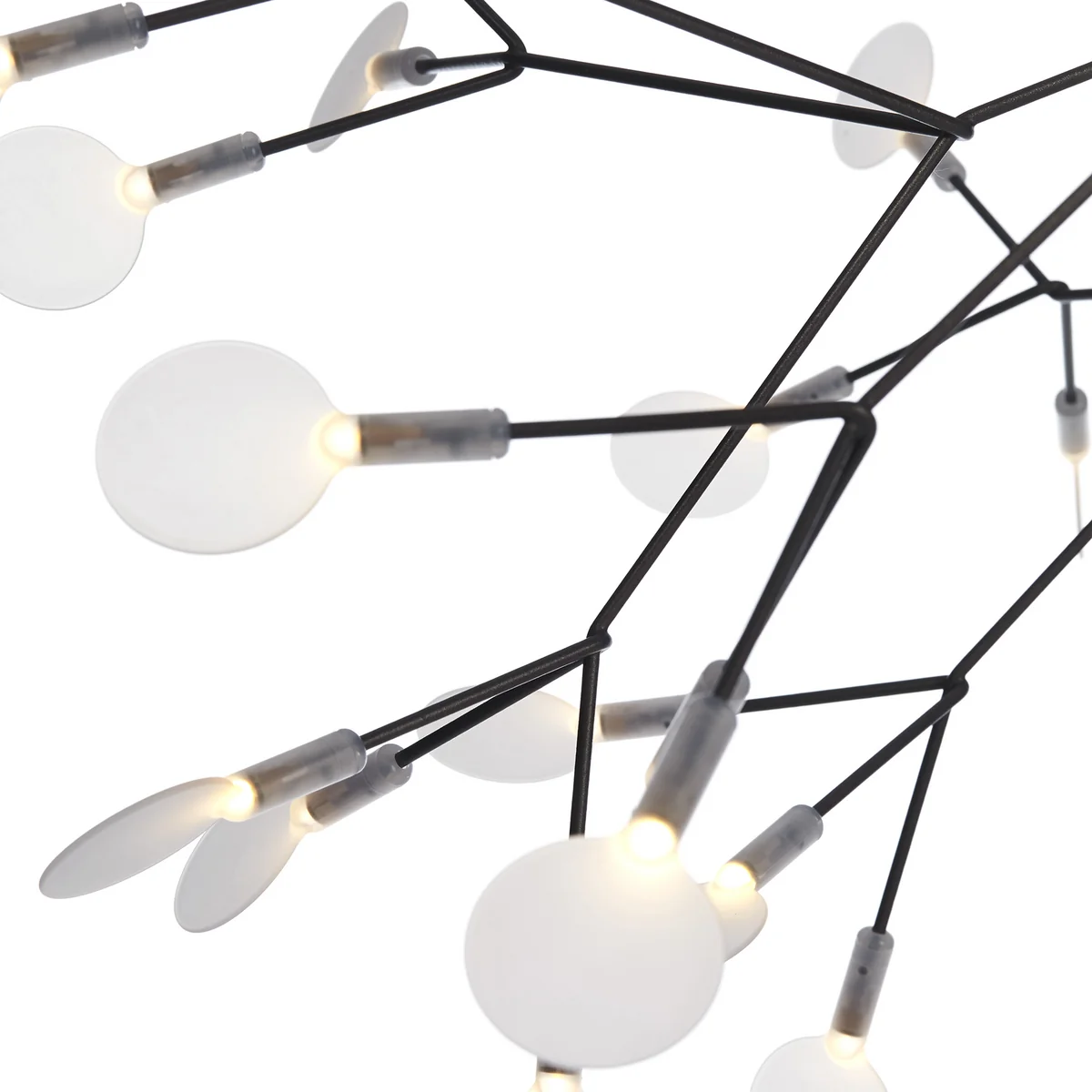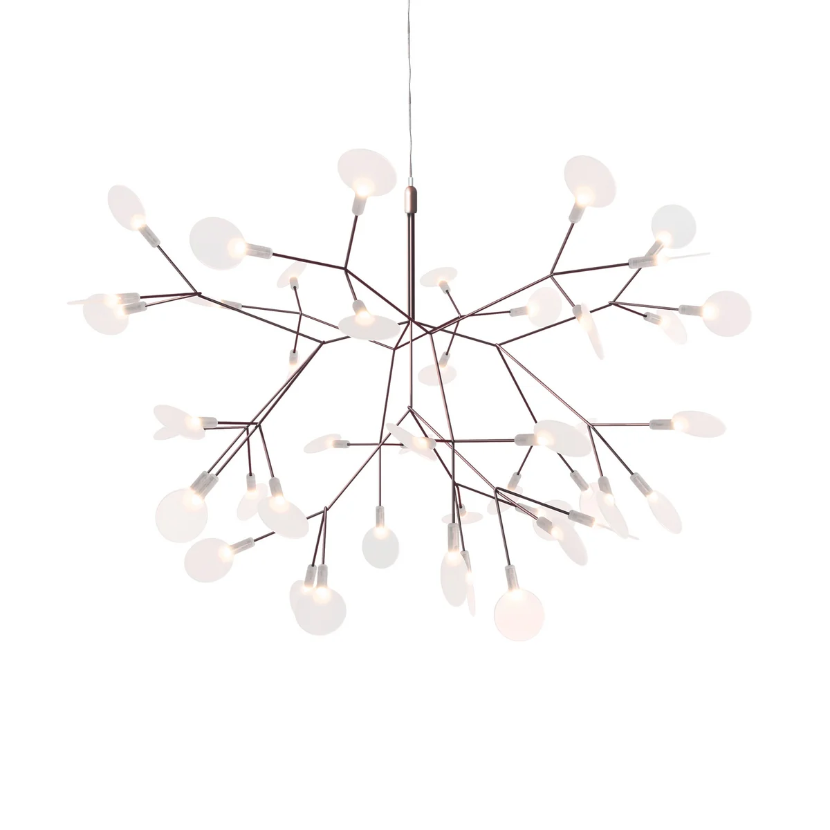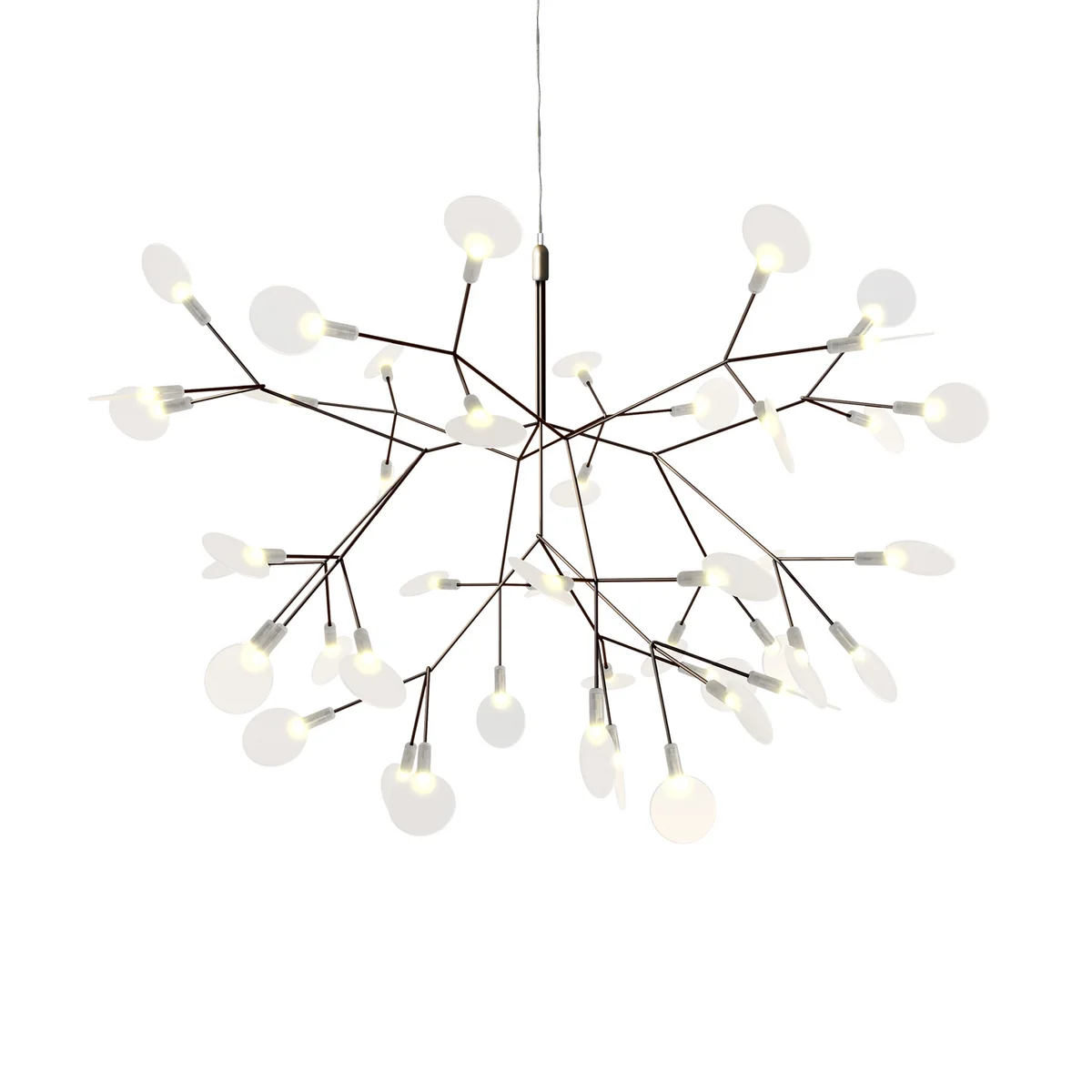 De stengels van het delicate Heracleum II lampje, gebaseerd op één tak, zijn verdeeld in dunne strengen die zorgen voor een technisch en tegelijkertijd organisch licht. De snaren aan elk uiteinde in één blad dat tegelijkertijd het licht van de in totaal 45 LED-lampen verspreidt. De in totaal 45 "Leaves" van de lamp zijn ook verplaatsbaar waardoor de sculpturale lamp, indien nodig, verstelbaar is.