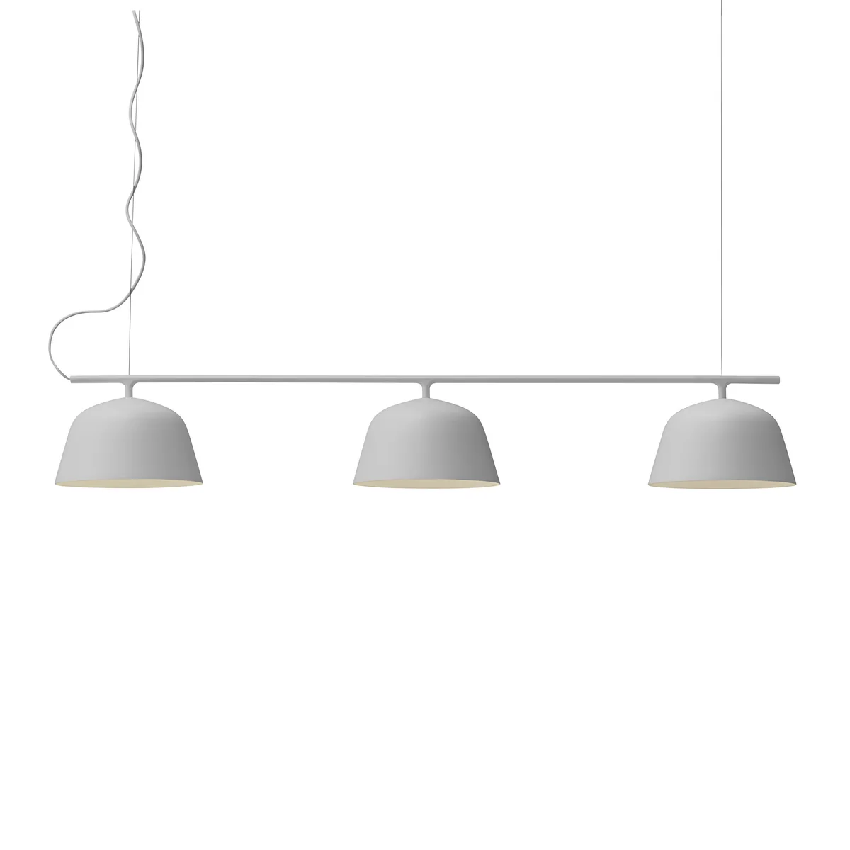 De Ambit Rail ophanging van Muuto is een opvallende hanglamp die vooral opvalt boven de eettafel, keukenblok of toonbank. De door TAF Architects ontworpen lamp bestaat uit een lineaire rail waaraan drie harmonisch gevormde lampenkappen zijn opgehangen, die zorgen voor een optimale verlichting van het onderliggende oppervlak.