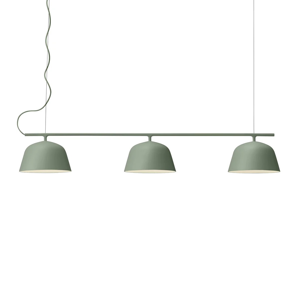 De Ambit Rail ophanging van Muuto is een opvallende hanglamp die vooral opvalt boven de eettafel, keukenblok of toonbank. De door TAF Architects ontworpen lamp bestaat uit een lineaire rail waaraan drie harmonisch gevormde lampenkappen zijn opgehangen, die zorgen voor een optimale verlichting van het onderliggende oppervlak.
