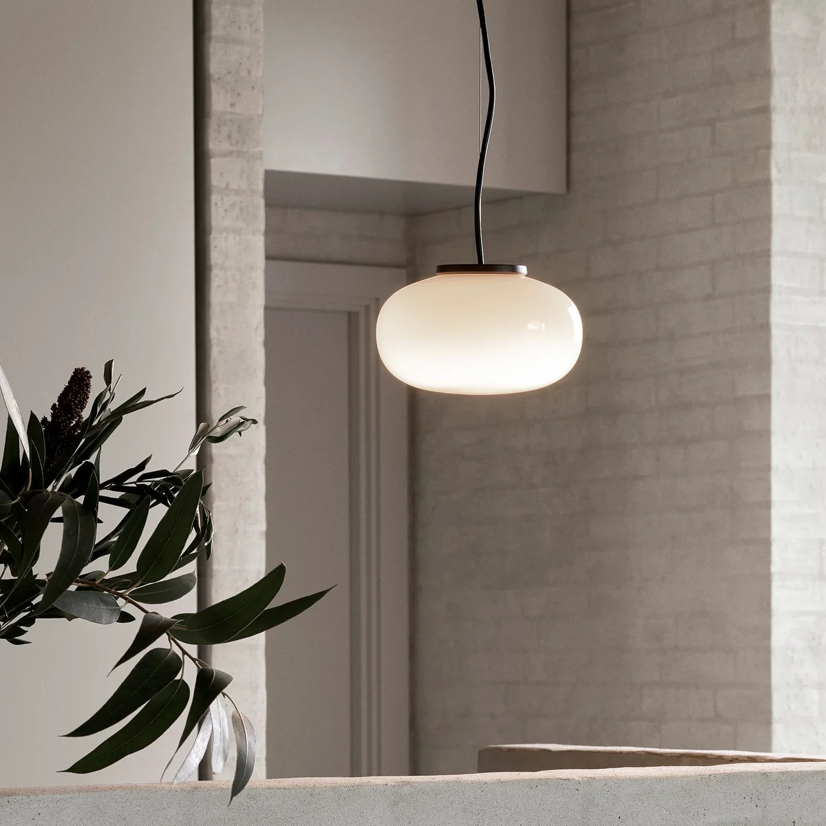 De Karl-Johan LED hanglamp wordt gekenmerkt door haar harmonieuze vorm en het gebruik van eersteklas materialen. De lampenkap is gemaakt van mondgeblazen glas, dat verkrijgbaar is in twee versies: opaalwit voor een zachte, diffuse lichtverspreiding of rookglas voor een sfeervolle ambiance.