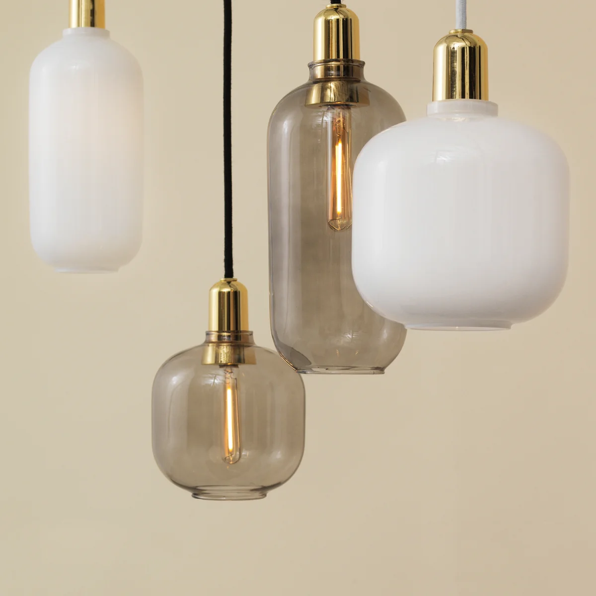 Het idee voor de vorm van de Amp Het idee voor de vorm van de hanglamp ontstond toen ontwerper Simon Legald thuis een oude radio uit de jaren 60 aan het restaureren was. Toen hij op zoek was naar een reserveonderdeel voor de radio, viel hem de glinstering van de buizenversterker op. De eenvoudige ovale vorm en het L amp scherm verwijzen ernaar - net als de naam Amp de Engelse naam voor buizenversterker. De proporties van de Amp armaturen van Normann Copenhagen zijn zorgvuldig uitgewerkt.
