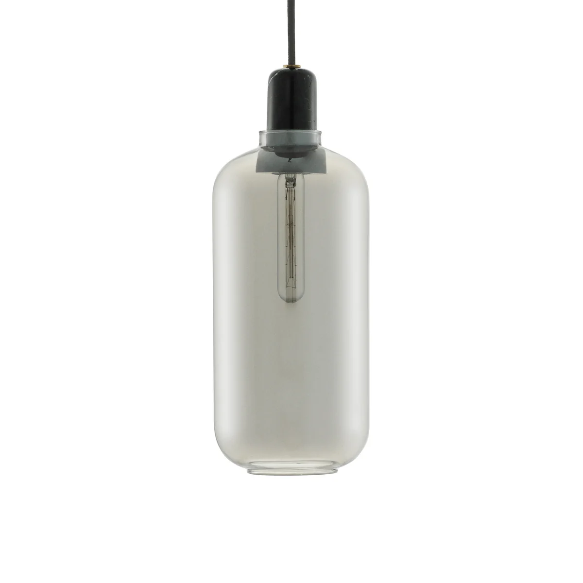 Het idee voor de vorm van de Amp Het idee voor de vorm van de hanglamp ontstond toen ontwerper Simon Legald thuis een oude radio uit de jaren 60 aan het restaureren was. Toen hij op zoek was naar een reserveonderdeel voor de radio, viel hem de glinstering van de buizenversterker op. De eenvoudige ovale vorm en het L amp scherm verwijzen ernaar - net als de naam Amp de Engelse naam voor buizenversterker. De proporties van de Amp armaturen van Normann Copenhagen zijn zorgvuldig uitgewerkt.