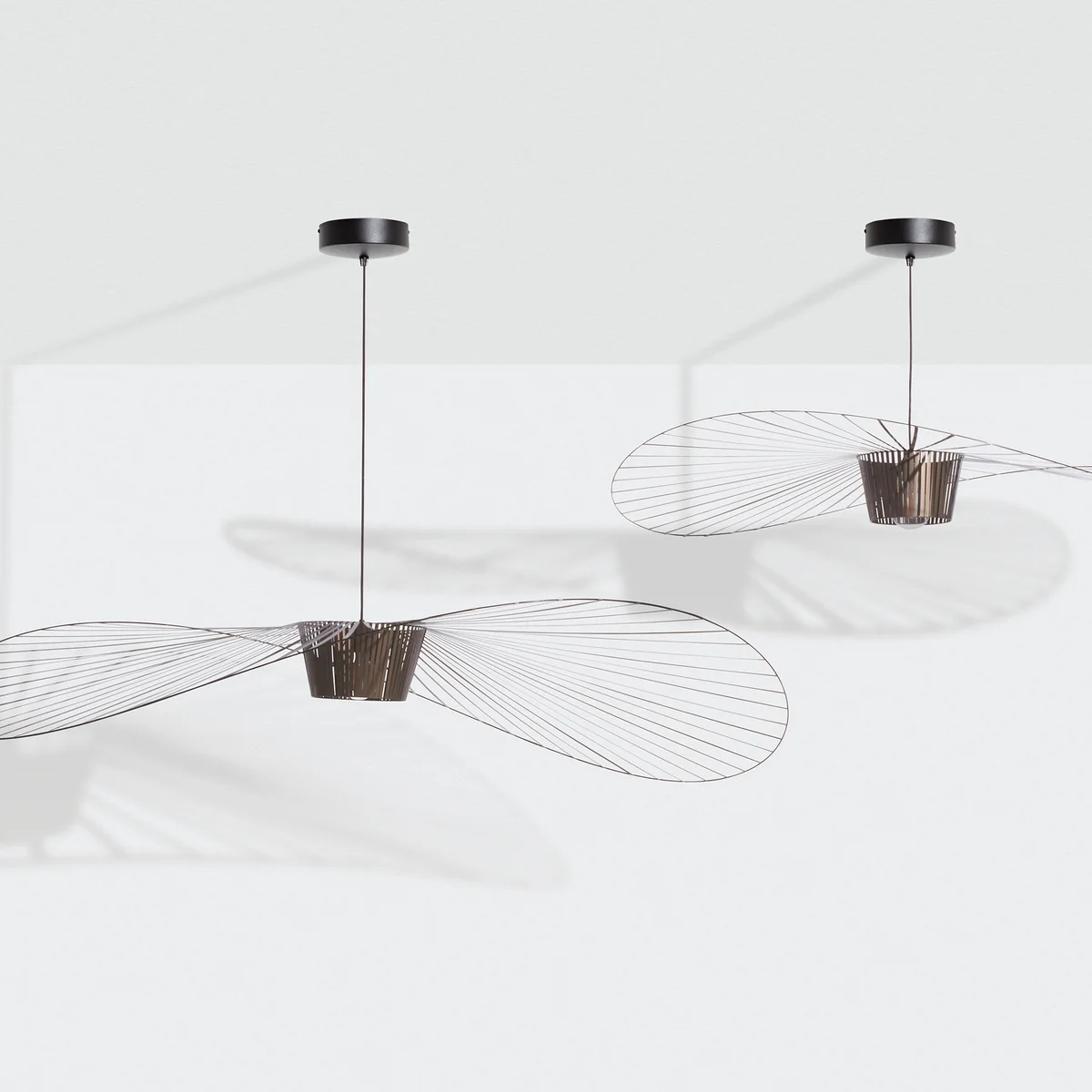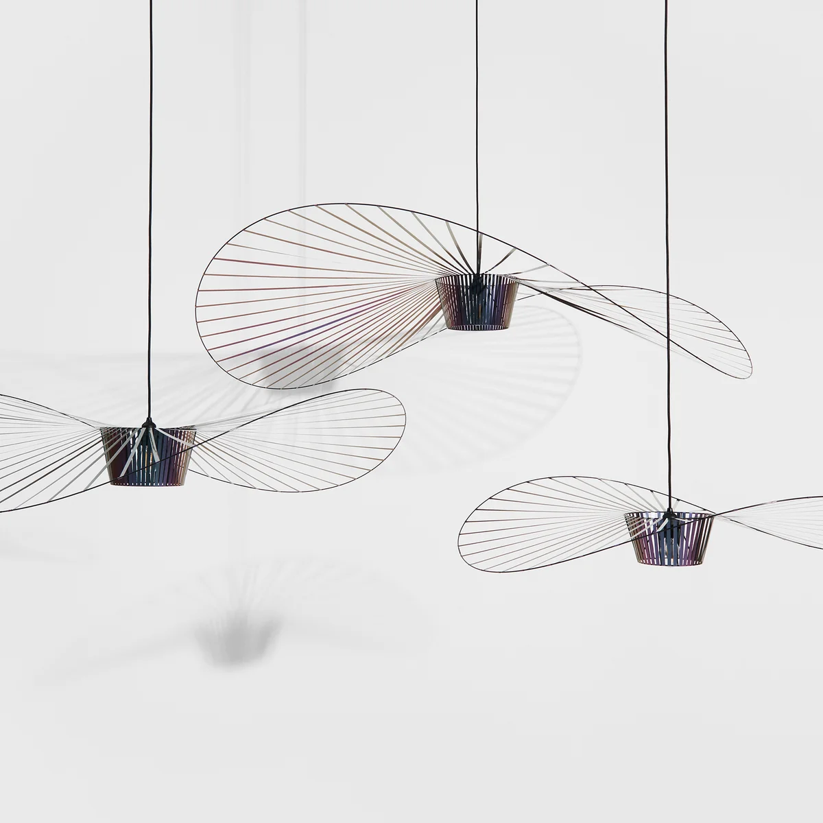 Vertigo van Petite Friture is een grote maar extreem lichte hanglamp van ontwerpster Constance Guisset. De lamp is niet alleen licht in gewicht, maar ook in uiterlijk. Vertigo De lamp bestaat uit een groot aantal beweegbare stokjes die een diffuus schaduwpatroon werpen zodra ze worden verlicht door het licht.