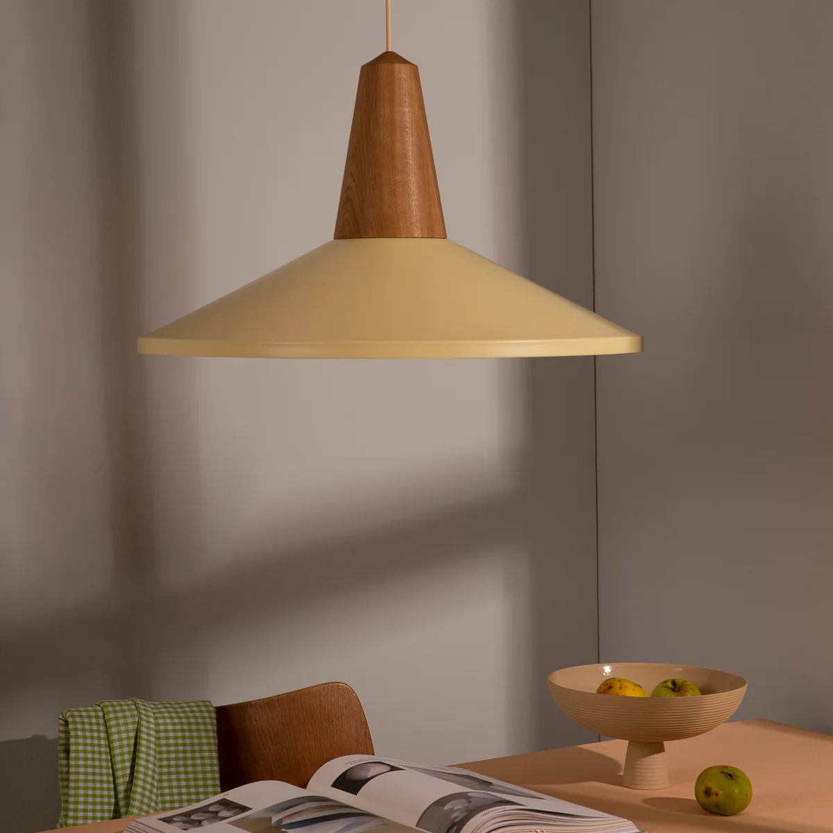 De Eikon hanglamp van Julia Jessen & Niklas Jessen voor de Duitse fabrikant Schneid inspireert met haar eenvoudige, maar tegelijkertijd uiterst levendige uitdrukking. De tijdloze lamp uit 2013 is een geweldige blikvanger met zijn houten voet en de lampenkap van staal!
