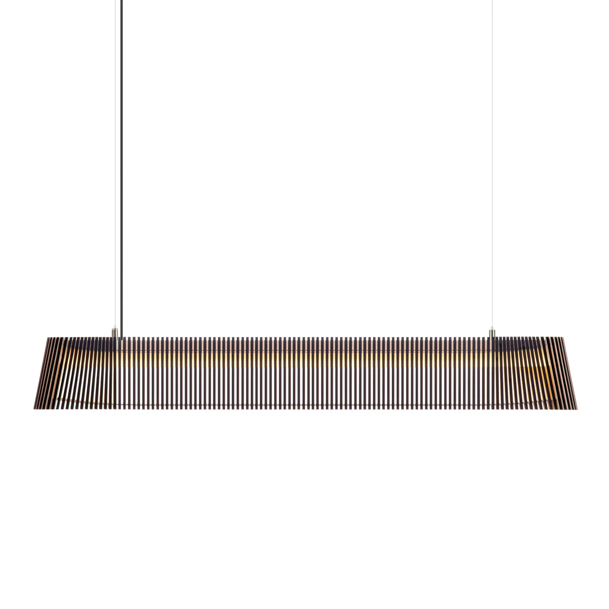 Het slanke en langgerekte design wordt perfect weergegeven op grote eettafels of balies en zorgt voor sfeervol licht in harmonie met de natuur. De armatuur wordt met een staalkabel aan het plafond bevestigd en heeft een totale lengte van 100 cm. In combinatie met een externe fasedimmer zorgt hij altijd voor het juiste licht.