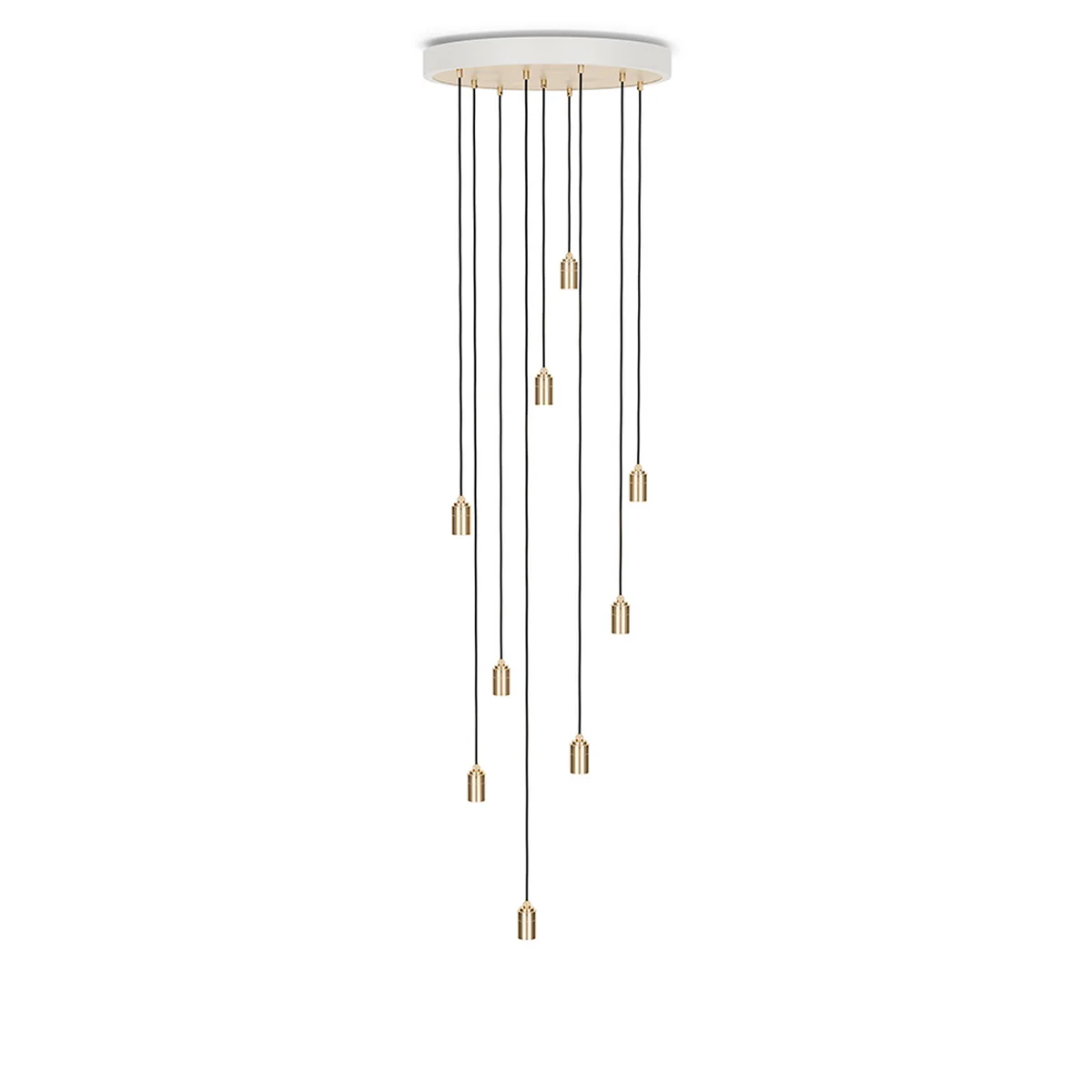 De pendelarmatuur Nine is een alles-in-één verlichtingsoplossing van Tala , die negen karakteristieke pendelarmaturen combineert met een grote plafondbaldakijn.